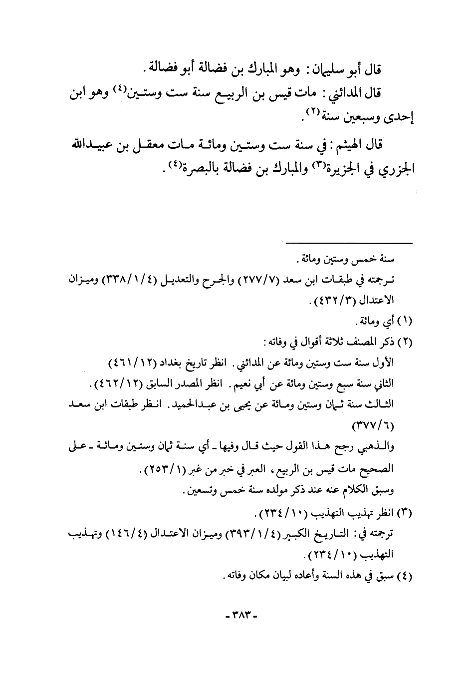 قَالَ الْهَيْثَم فِي سنة سِتّ وَسِتِّينَ وَمِائَة مَاتَ معقل بن عبيد الله الْجَزرِي فِي الجزيرة وَالْمبَارك بن فضَالة بِالْبَصْرَةِ