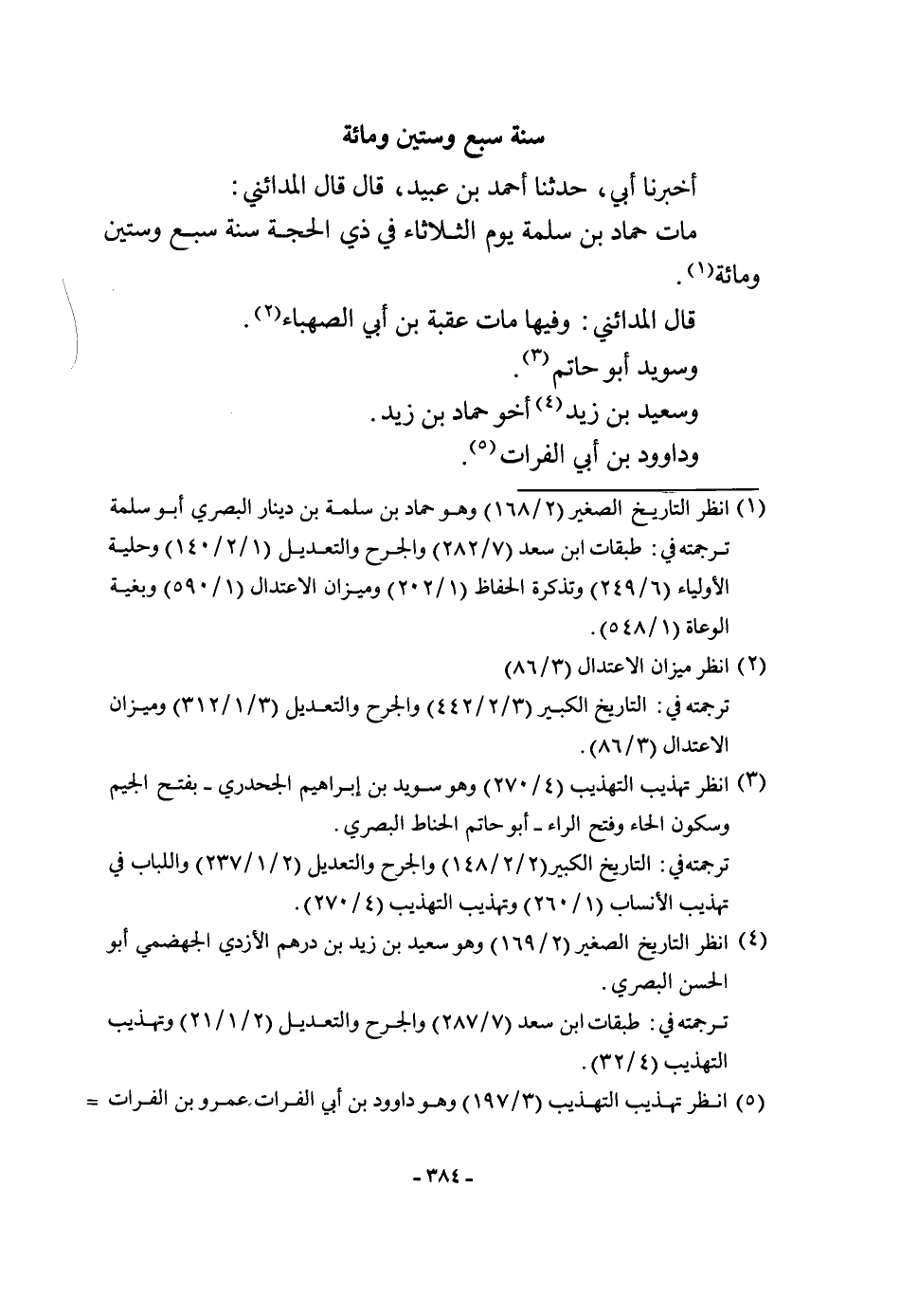 أخبرنَا أبي حَدثنَا أَحْمد بن عبيد قَالَ قَالَ الْمَدَائِنِي مَاتَ حَمَّاد بن سَلمَة يَوْم الثُّلَاثَاء فِي ذِي الْحجَّة سنة سبع وَسِتِّينَ وَمِائَة قَالَ الْمَدَائِنِي وفيهَا مَاتَ عقبَة بن أبي الصَّهْبَاء وسُويد أَبُو حَاتِم وَسَعِيد بن زيد أَخُو حَمَّاد بن زيد