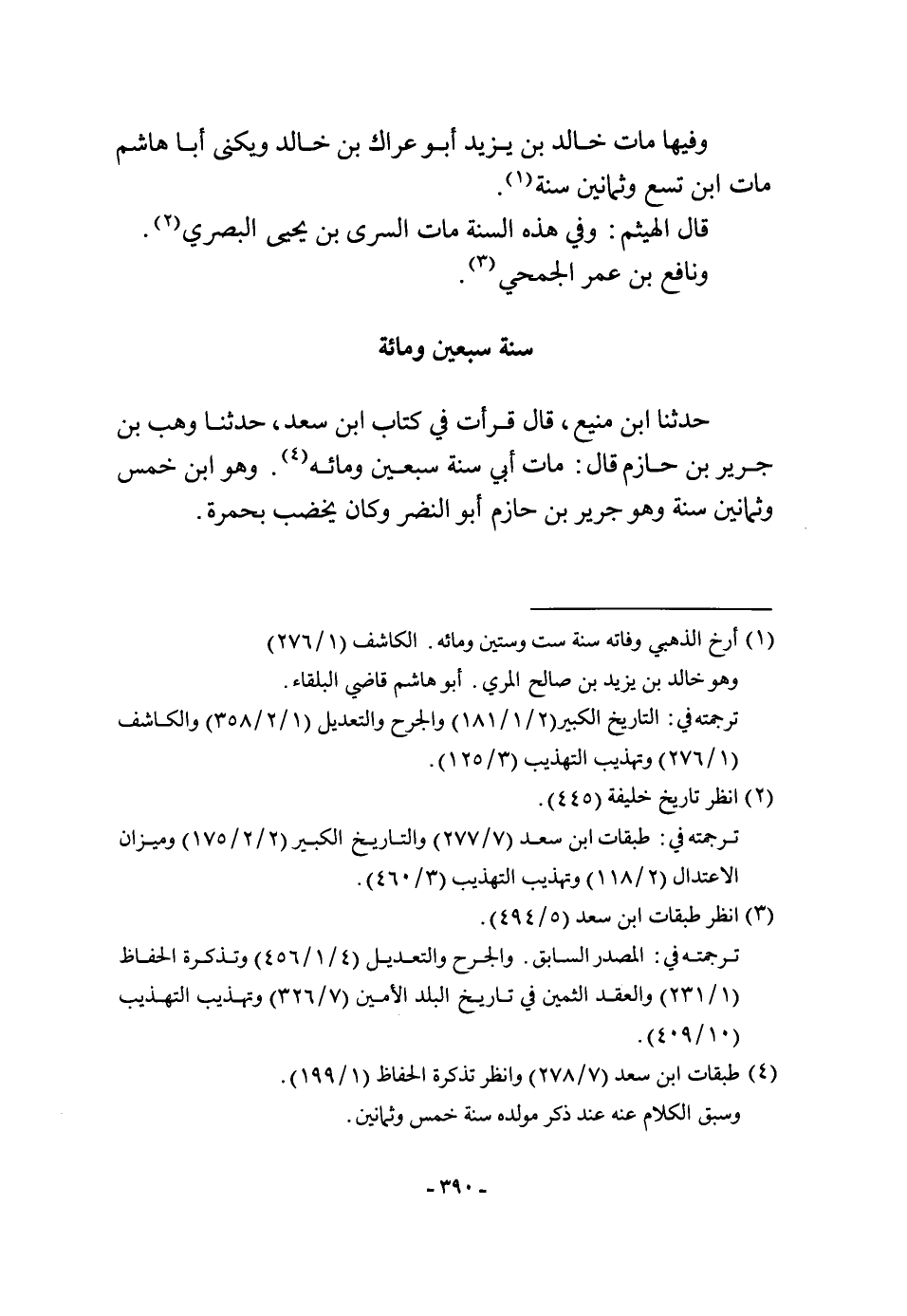 حَدثنَا ابْن منيع قَالَ قَرَأت فِي كتاب ابْن سعد حَدثنَا وهب بن جرير بن حَازِم قَالَ مَاتَ أبي سنة سبعين وَمِائَة وَهُوَ ابْن خمس وَثَمَانِينَ سنة وَهُوَ جرير بن حَازِم أَبُو النَّضر وَكَانَ يخضب بحمرة