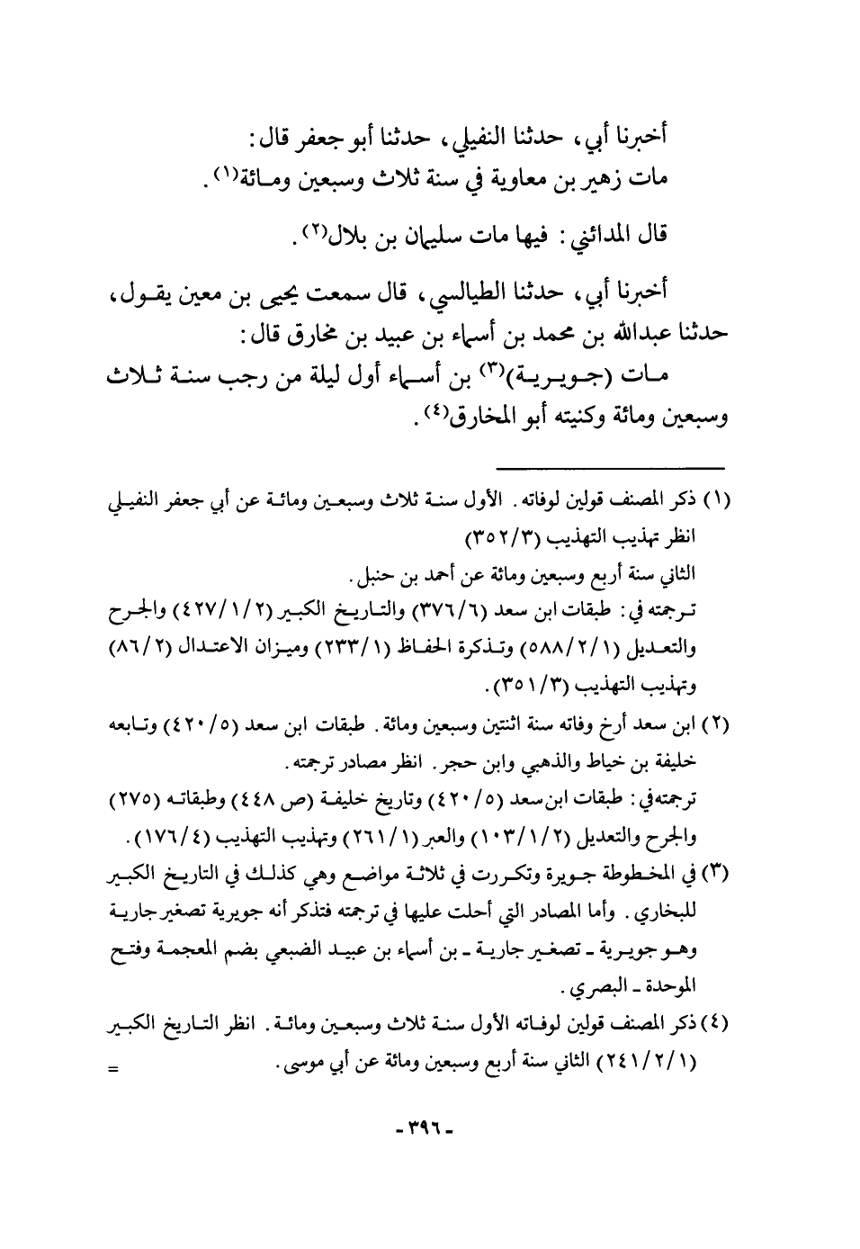 أخبرنَا أبي حَدثنَا النُّفَيْلِي حَدثنَا أَبُو جَعْفَر قَالَ مَاتَ زُهَيْر بن مُعَاوِيَة فِي سنة ثَلَاث وَسبعين وَمِائَة