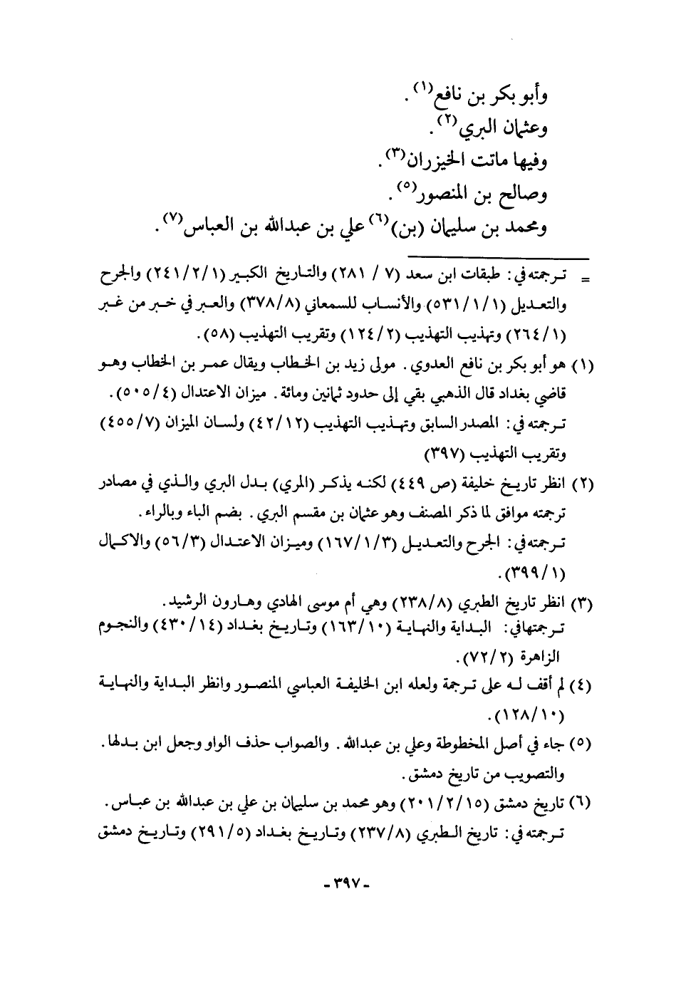 وَأَبُو بكر بن نَافِع وَعُثْمَان الْبري وفيهَا مَاتَت الخزيران وَصَالح بن الْمَنْصُور وَمُحَمّد بن سُلَيْمَان بن عَليّ بن عبد الله بن الْعَبَّاس