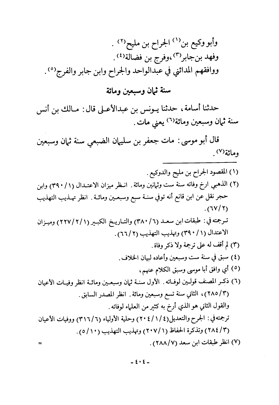 وَأَبُو وَكِيع بن الْجراح بن مليح وفهد بن جَابر وَفرج بن فضَالة وَوَافَقَهُمْ الْمَدَائِنِي فِي عبد الْوَاحِد والجراح وَابْن جَابر والفرج