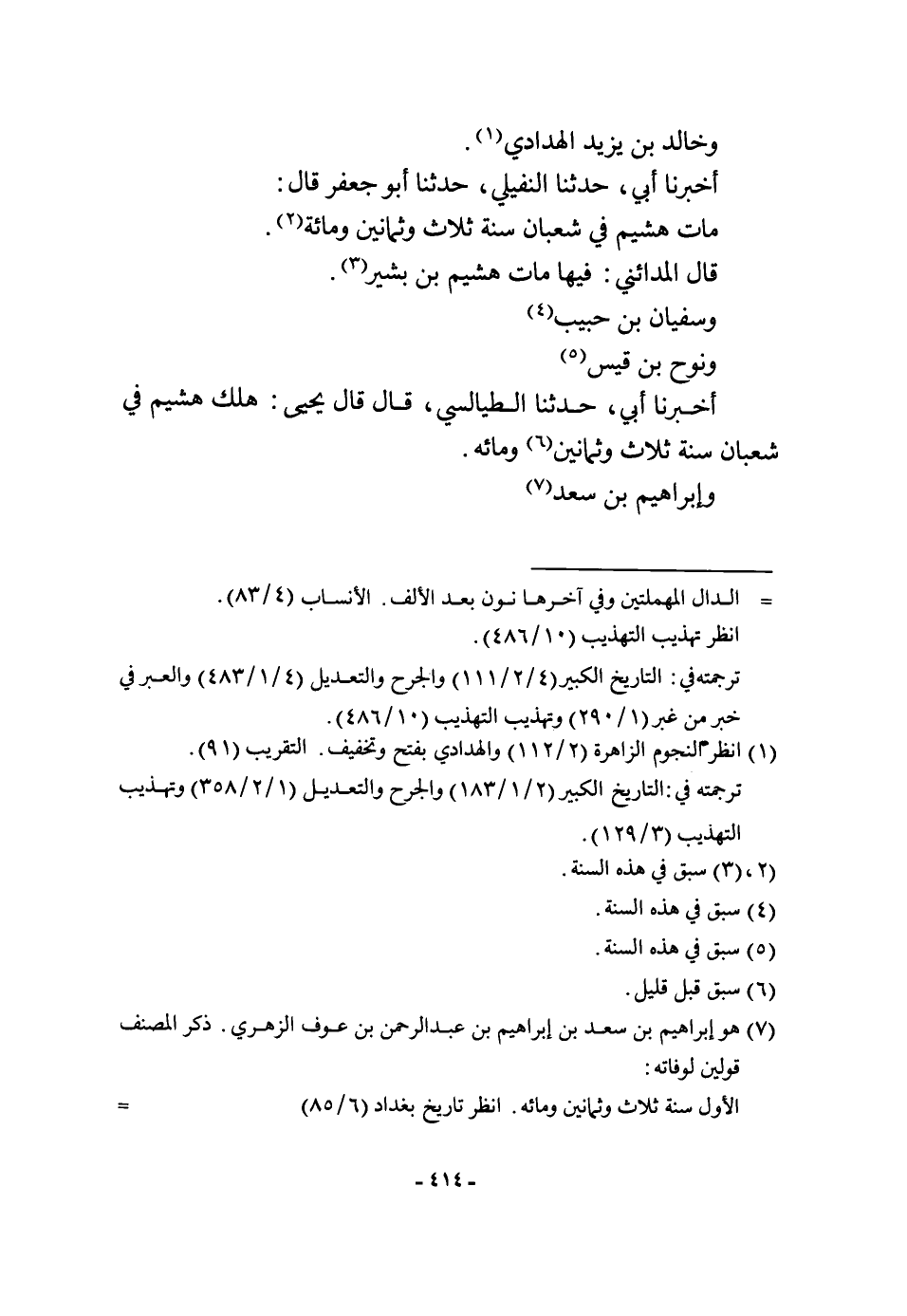 أخبرنَا أبي حَدثنَا الطَّيَالِسِيّ قَالَ قَالَ يحيى هلك هشيم فِي شعْبَان سنة ثَلَاث وَثَمَانِينَ ومائه وَإِبْرَاهِيم ابْن سعد