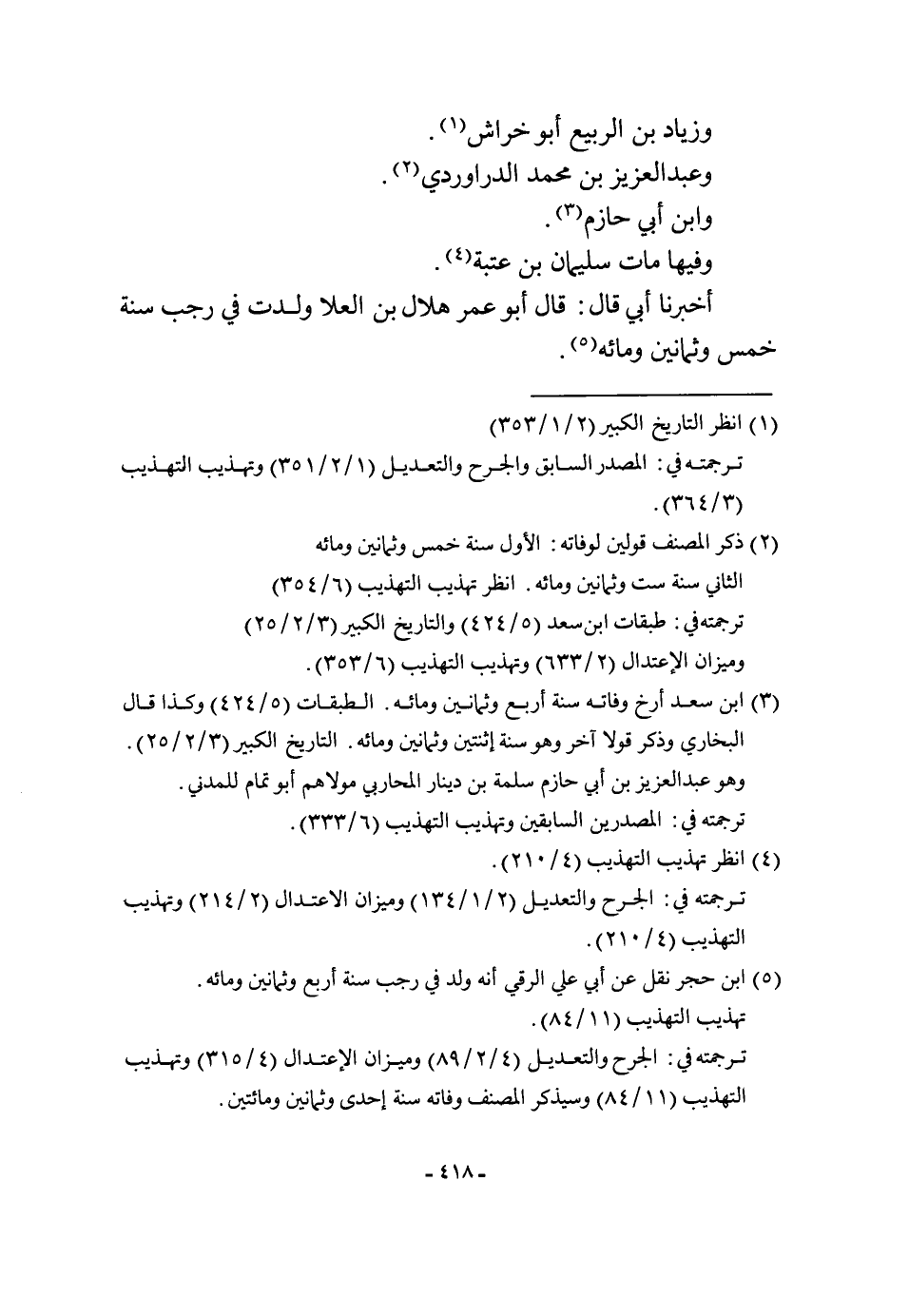 أخبرنَا أبي قَالَ قَالَ أَبُو عمر هِلَال بن الْعلَا ولدت فِي رَجَب سنة خمس وَثَمَانِينَ ومائه