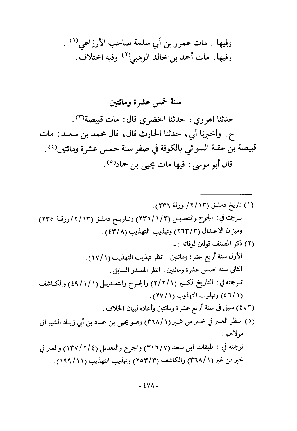 حَدثنَا الْهَرَوِيّ حَدثنَا الخضري قَالَ مَاتَ قبيصَة