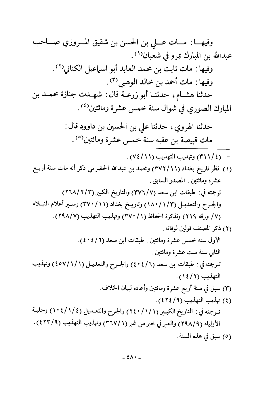 وفيهَا مَاتَ عَليّ بن الْحسن بن شَقِيق الْمروزِي صَاحب عبد الله بن الْمُبَارك بمرو فِي شعْبَان