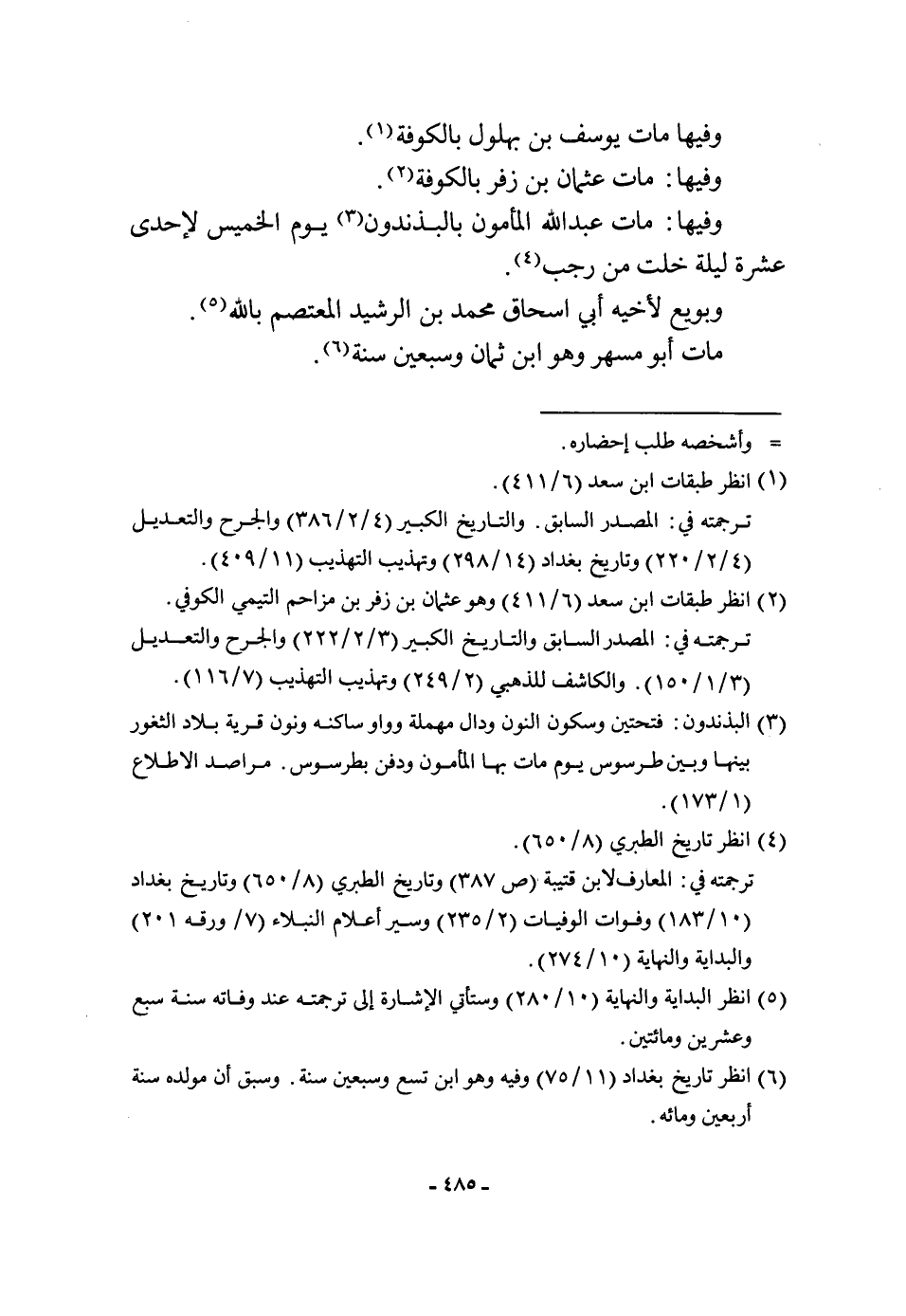 وفيهَا مَاتَ يُوسُف بن بهْلُول بِالْكُوفَةِ