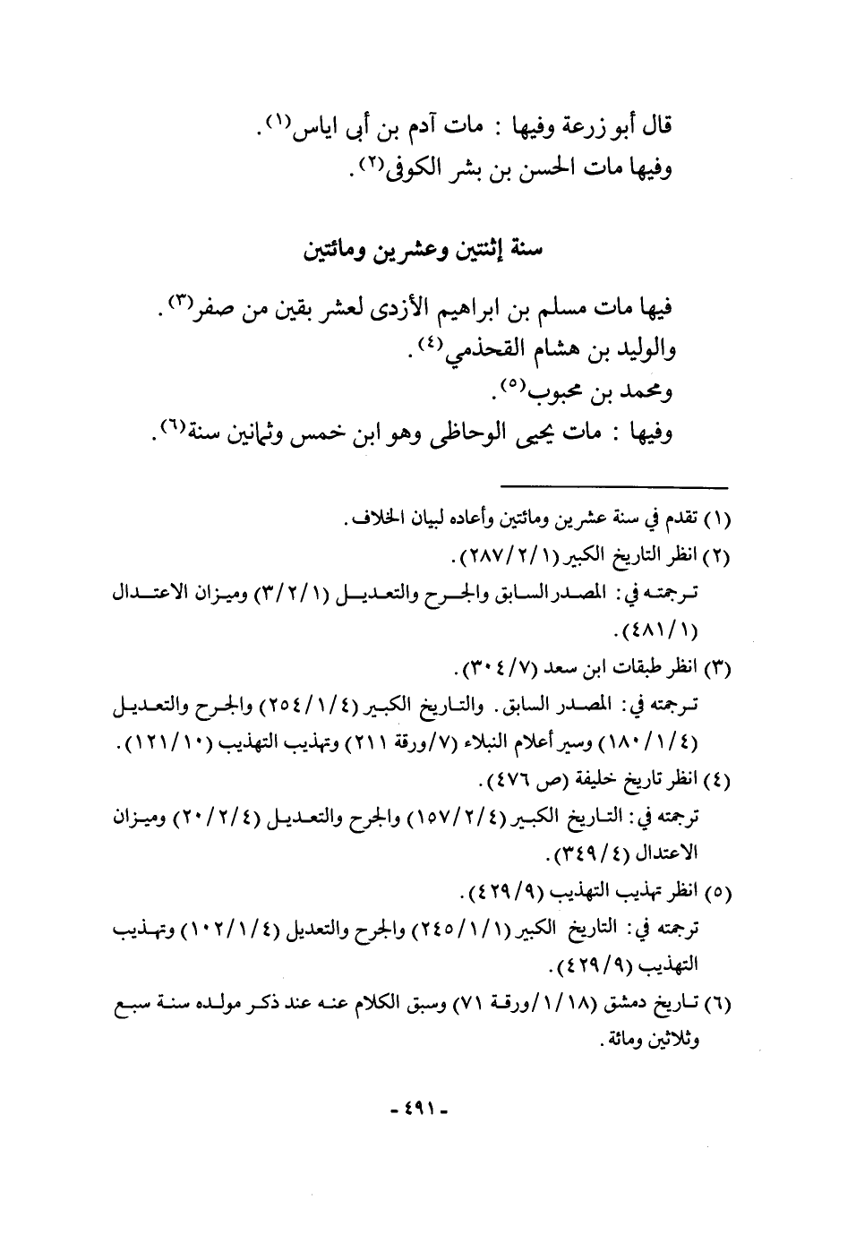 قَالَ أَبُو زرْعَة وفيهَا مَاتَ آدم بن أَبى اياس