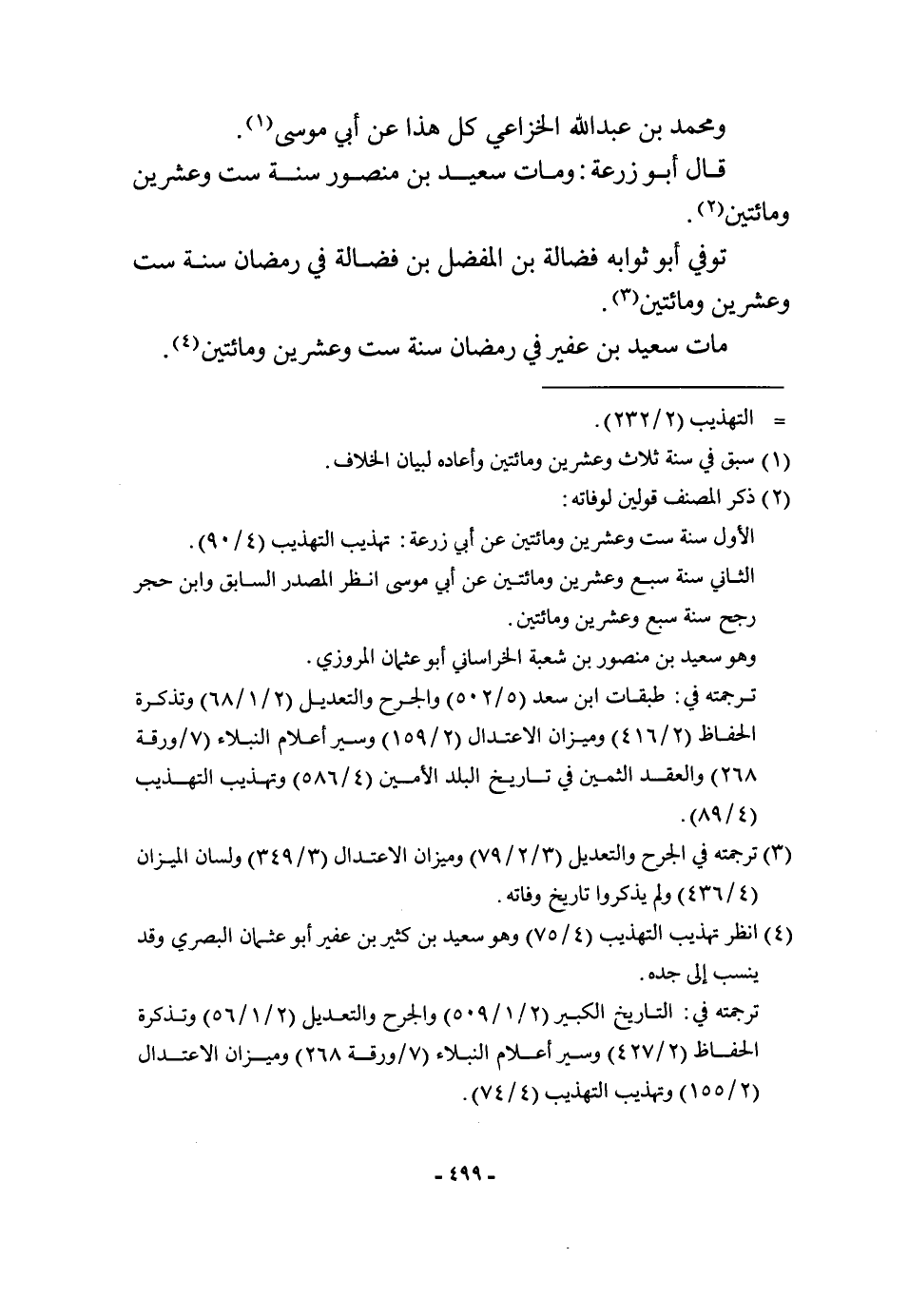قَالَ أَبُو زرْعَة وَمَات سعيد بن مَنْصُور سنة سِتّ وَعشْرين وَمِائَتَيْنِ