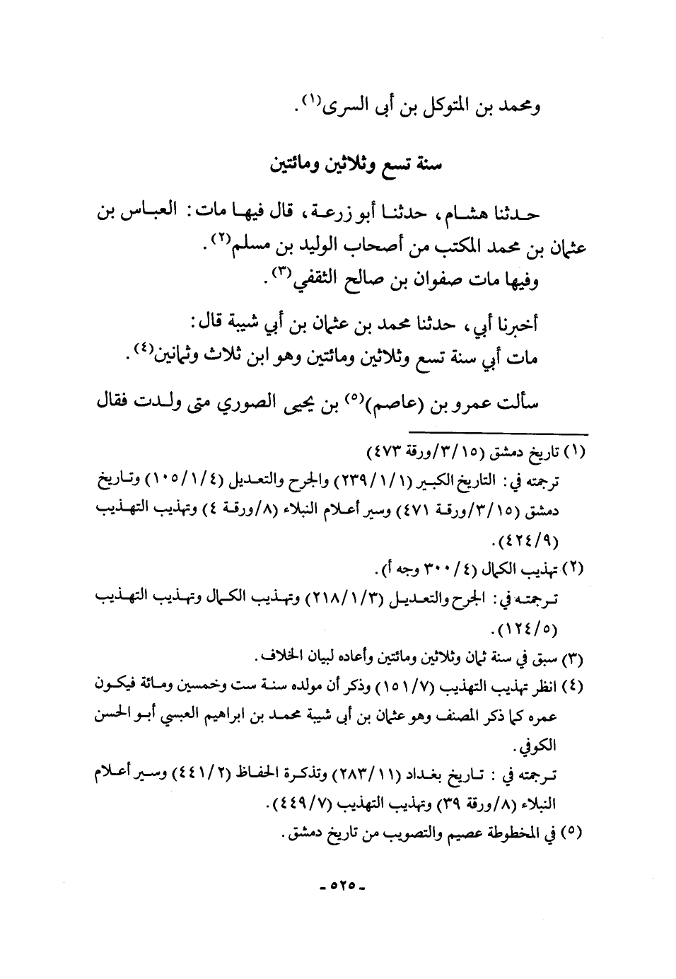 حَدثنَا هِشَام حَدثنَا أَبُو زرْعَة قَالَ فِيهَا مَاتَ الْعَبَّاس بن عُثْمَان بن مُحَمَّد الْمكتب من أَصْحَاب الْوَلِيد بن مُسلم