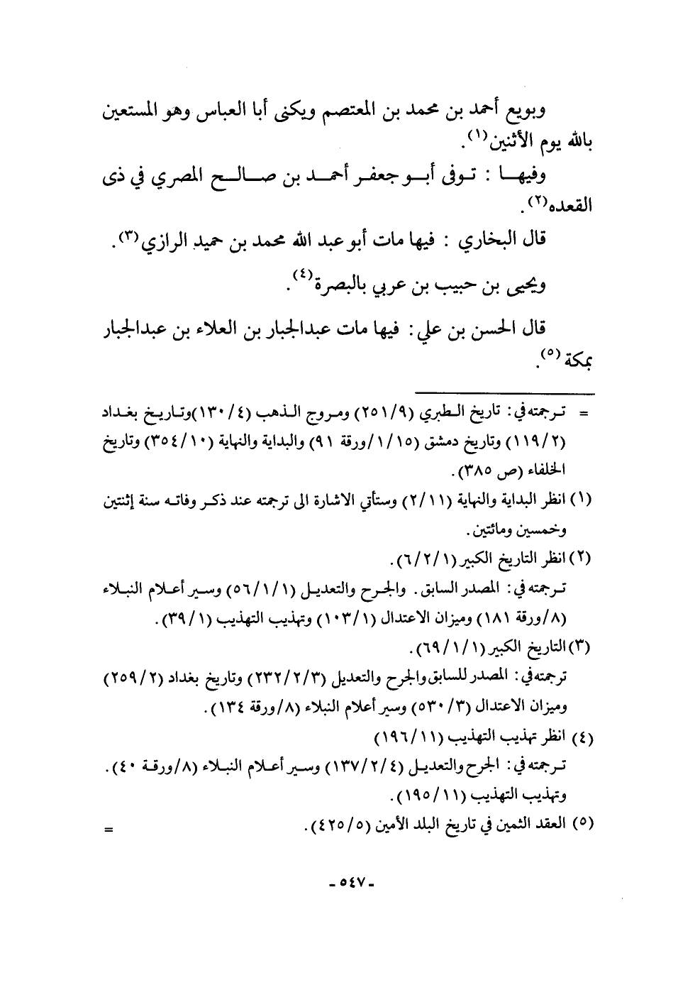 قَالَ البُخَارِيّ فِيهَا مَاتَ أَبُو عبد الله مُحَمَّد بن حميد الرَّازِيّ وَيحيى بن حبيب بن عَرَبِيّ بِالْبَصْرَةِ