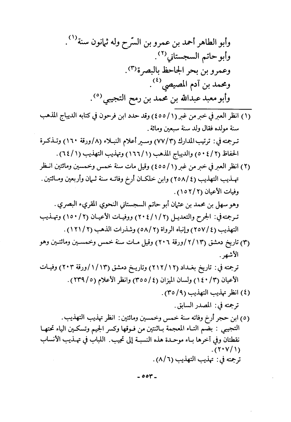 وَأَبُو الطَّاهِر أَحْمد بن عَمْرو بن السَّرْح وَله ثَمَانُون سنة وَأَبُو حَاتِم السجسْتانِي وَعَمْرو بن بَحر الجاحظ بِالْبَصْرَةِ وَمُحَمّد بن آدم المصِّيصِي وَأَبُو معبد عبد الله بن مُحَمَّد بن رمح التجِيبِي