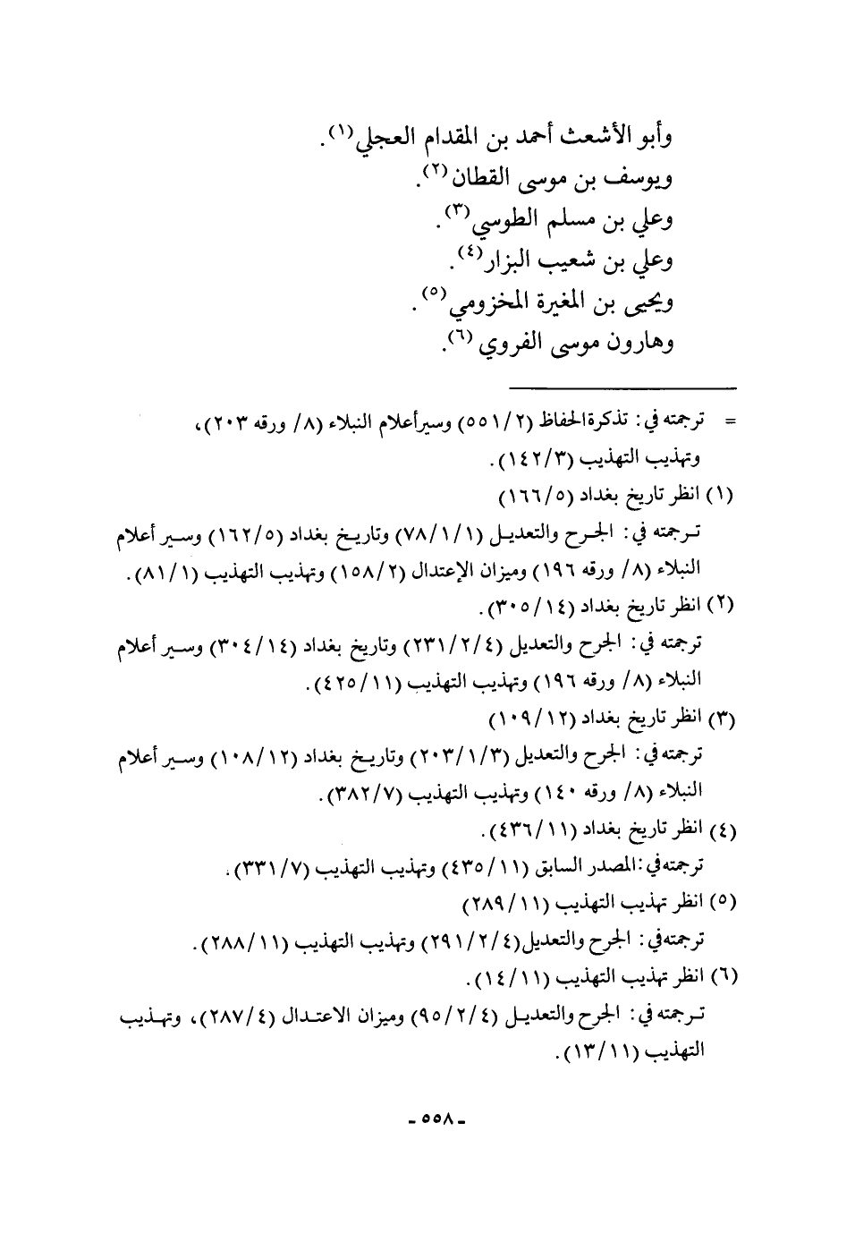 وَأَبُو الْأَشْعَث أَحْمد بن الْمِقْدَام الْعجلِيّ ويوسف بن مُوسَى الْقطَّان وَعلي بن مُسلم الطوسي وَعلي بن شُعَيْب الْبَزَّار وَيحيى بن الْمُغيرَة المَخْزُومِي وَهَارُون مُوسَى الْفَروِي