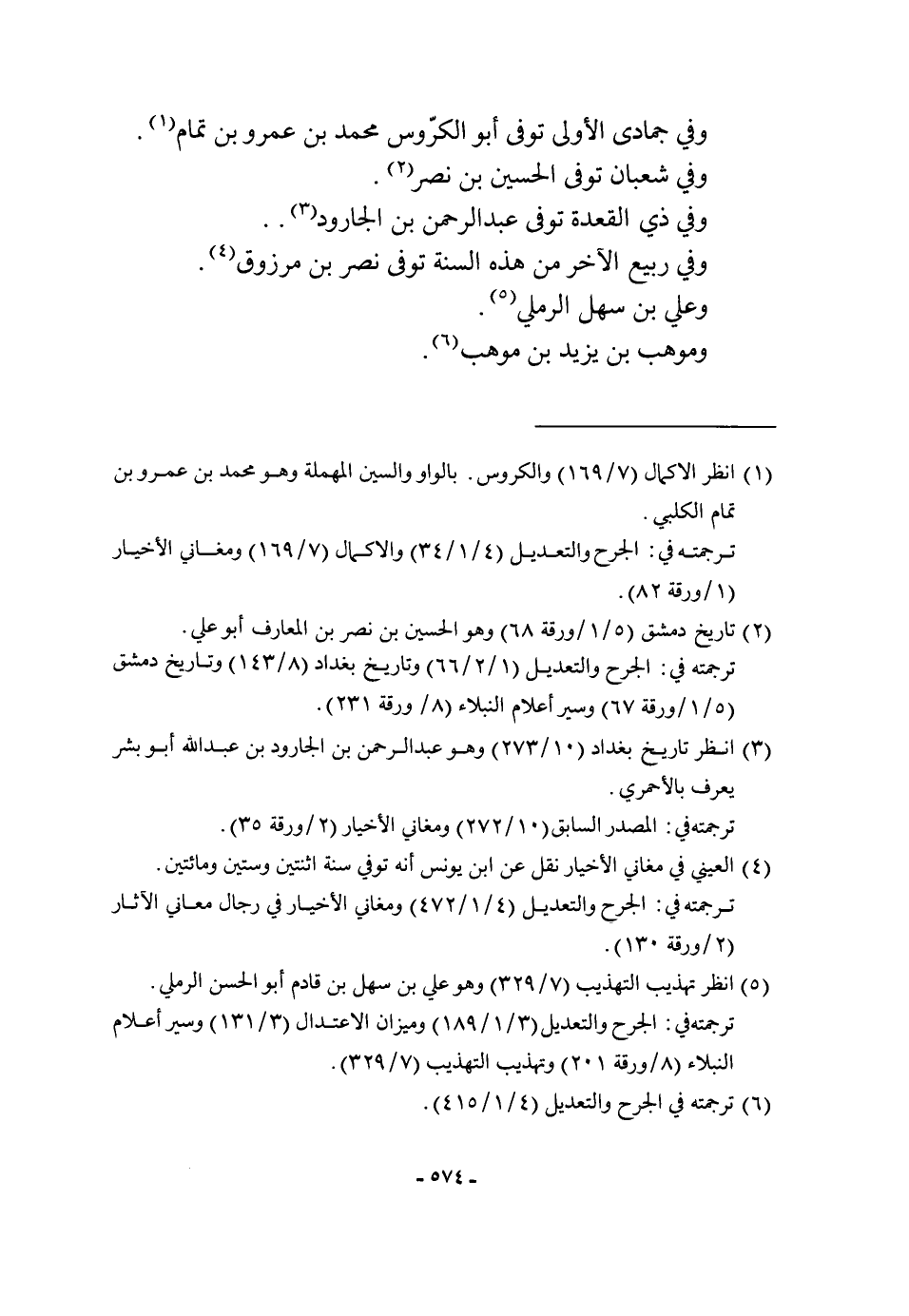 وَفِي جمادي الأولى توفّي أَبُو الكروس مُحَمَّد بن عَمْرو بن تَمام وَفِي شعْبَان توفّي الْحُسَيْن بن نصر وَفِي ذِي الْقعدَة توفّي عبد الرَّحْمَن بن الْجَارُود وَفِي ربيع الآخر من هَذِه السّنة توفّي نصر بن مَرْزُوق وَعلي بن سهل الرَّمْلِيّ وموهب بن يزِيد بن موهب