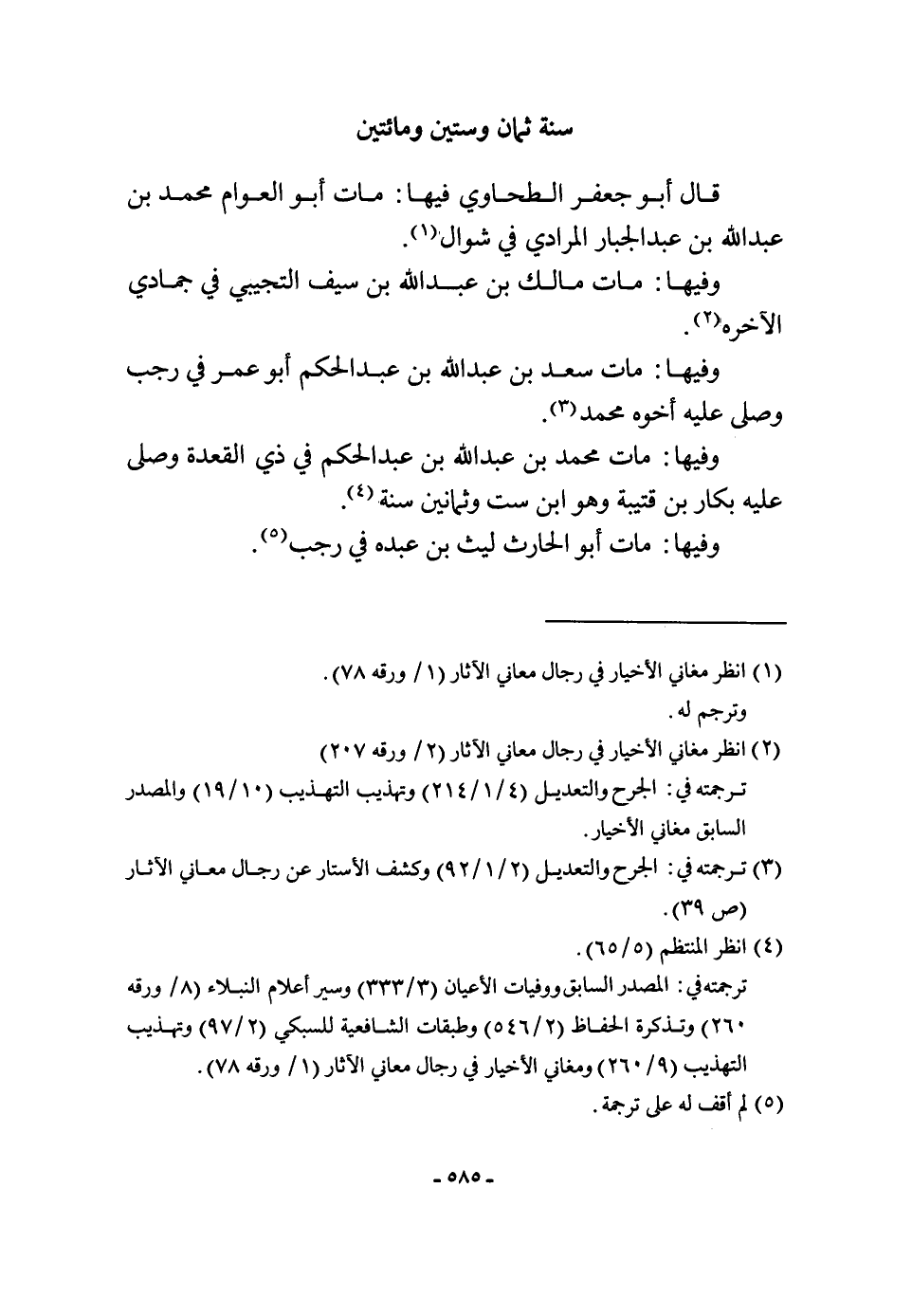 قَالَ أَبُو جَعْفَر الطَّحَاوِيّ فِيهَا مَاتَ أَبُو الْعَوام مُحَمَّد بن عبد الله بن عبد الْجَبَّار الْمرَادِي فِي شَوَّال