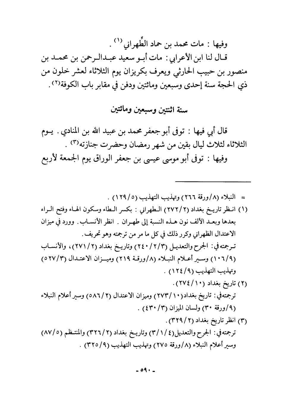 سنة اثْنَتَيْنِ وَسبعين وَمِائَتَيْنِ