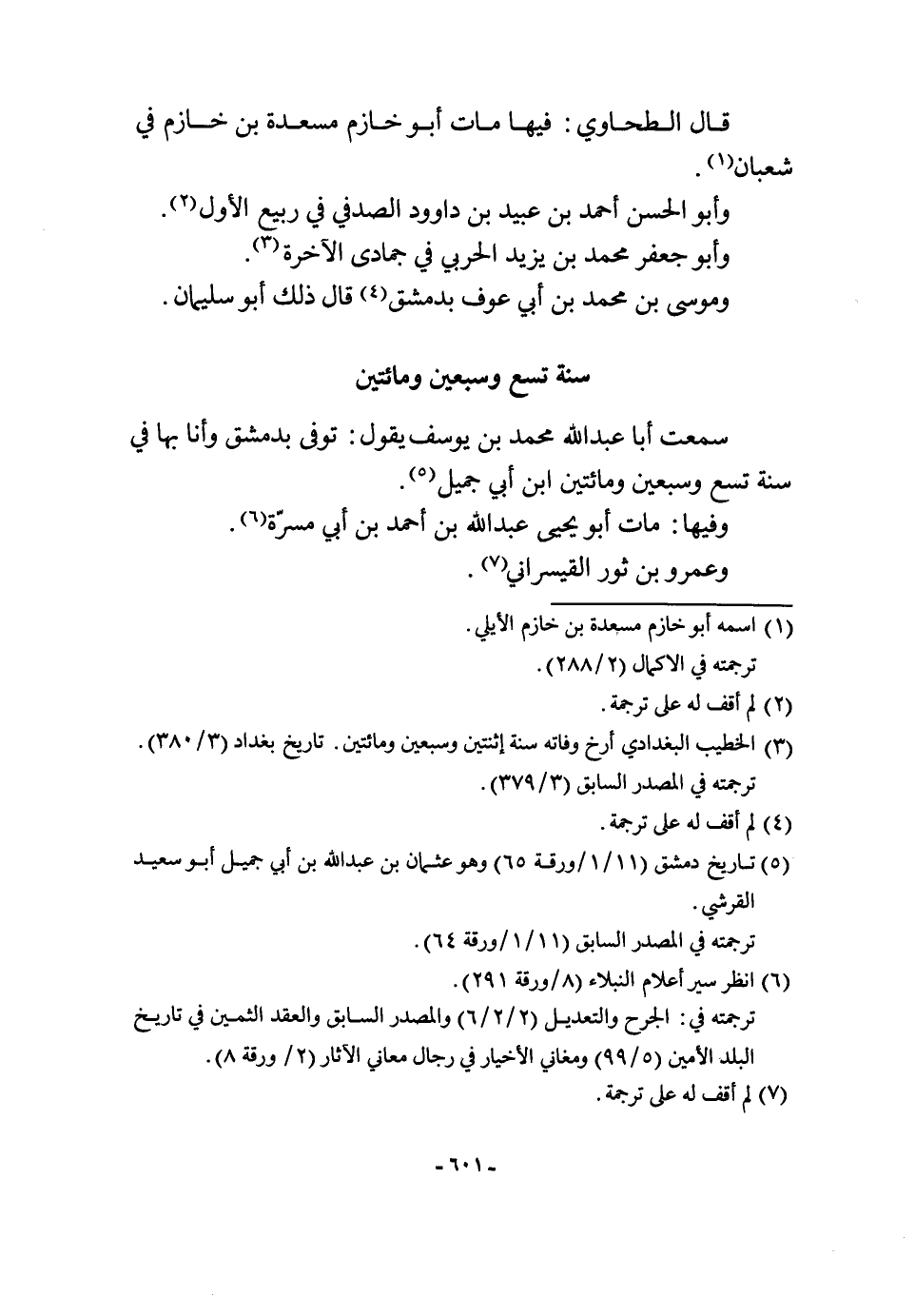 قَالَ الطَّحَاوِيّ فِيهَا مَاتَ أَبُو خازم مسْعدَة بن خازم فِي شعْبَان وَأَبُو الْحسن أَحْمد بن عبيد بن دَاوُود الصَّدَفِي فِي ربيع الأول وَأَبُو جَعْفَر مُحَمَّد بن يزِيد الْحَرْبِيّ فِي جمادي الْآخِرَة ومُوسَى بن مُحَمَّد بن أبي عَوْف بِدِمَشْق قَالَ ذَلِك أَبُو سُلَيْمَان