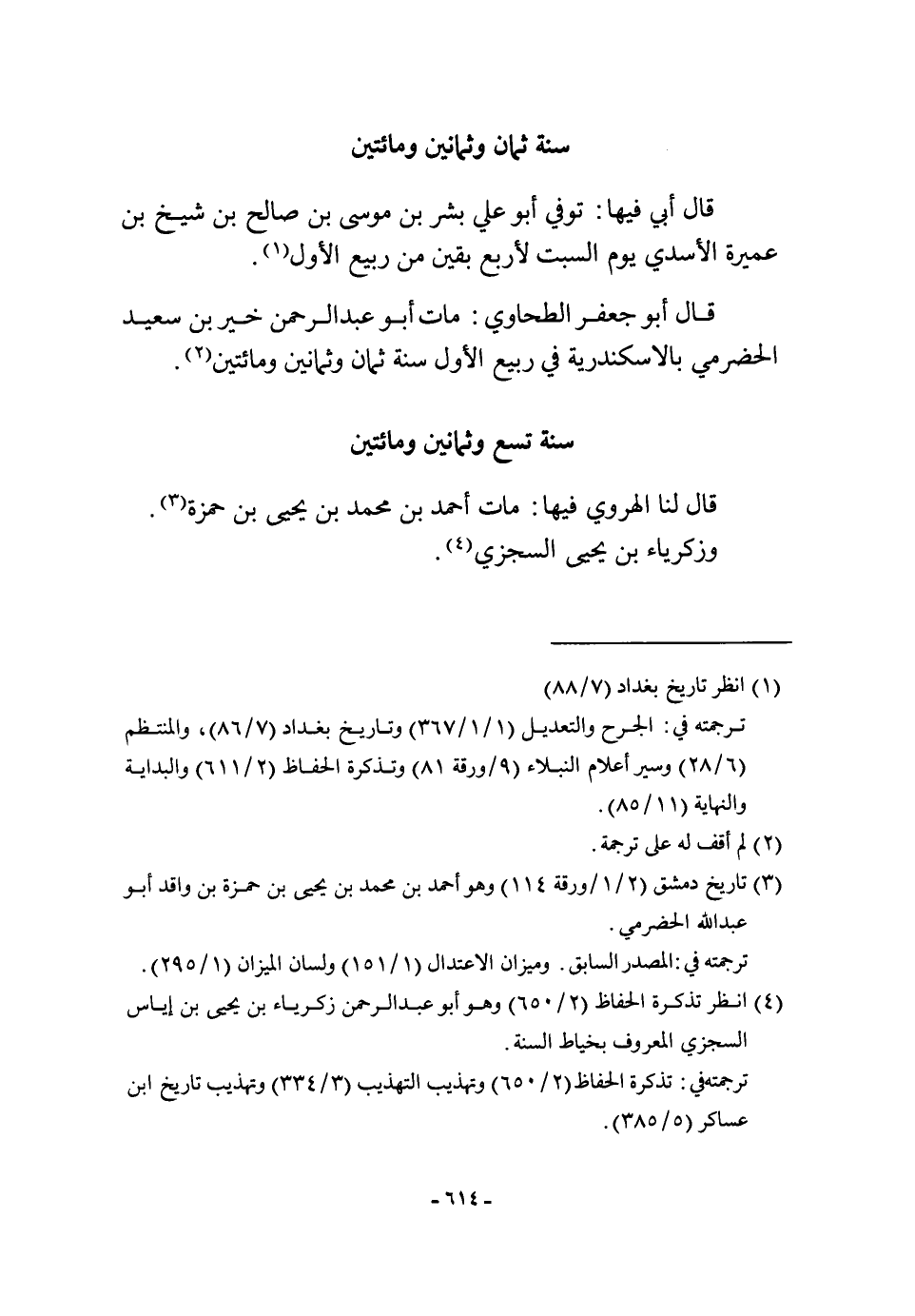 قَالَ أبي فِيهَا توفّي أَبُو عَليّ بشر بن مُوسَى بن صَالح بن شيخ بن عميرَة الْأَسدي يَوْم السبت لأَرْبَع بَقينَ من ربيع الأول قَالَ أَبُو جَعْفَر الطَّحَاوِيّ مَاتَ أَبُو عبد الرَّحْمَن خير بن سعيد الْحَضْرَمِيّ بالاسكندرية فِي ربيع الأول سنة ثَمَان وَثَمَانِينَ وَمِائَتَيْنِ