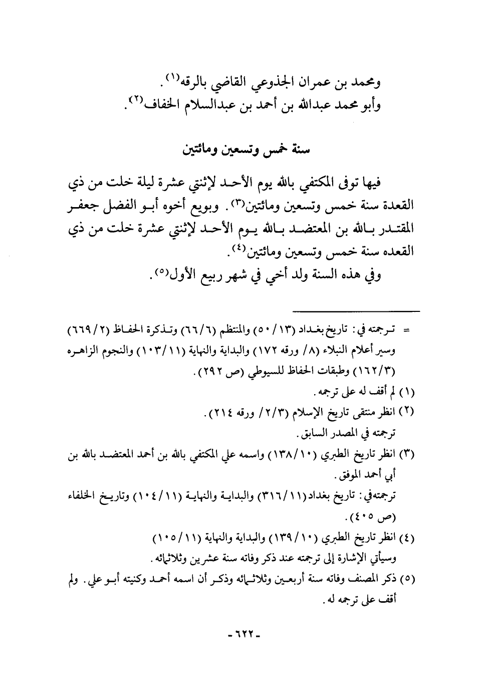 فِيهَا توفّي المكتفي بِاللَّه يَوْم الْأَحَد لإثنتي عشرَة لَيْلَة خلت من ذِي الْقعدَة سنة خمس وَتِسْعين وَمِائَتَيْنِ وبويع أَخُوهُ أَبُو الْفضل جَعْفَر المقتدر بِاللَّه بن المعتضد بِاللَّه يَوْم الْأَحَد لإثنتي عشرَة خلت من ذِي الْقعدَة سنة خمس وَتِسْعين وَمِائَتَيْنِ وَفِي هَذِه السّنة ولد أخي فِي شهر ربيع الأول