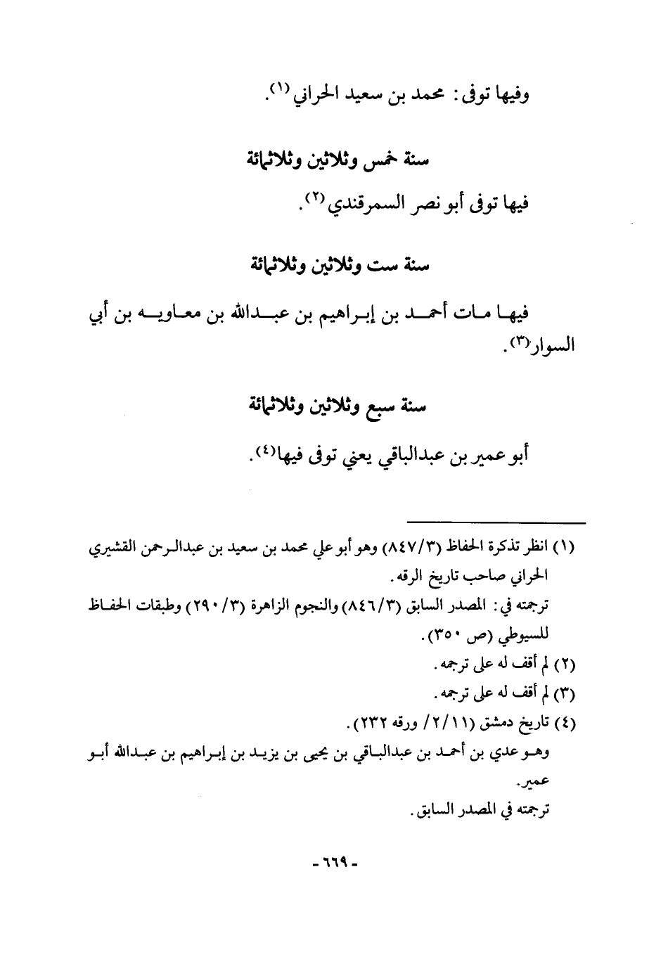 سنة سبع وَثَلَاثِينَ وثلاثمائة أَبُو عُمَيْر بن عبد الْبَاقِي يَعْنِي توفّي فِيهَا