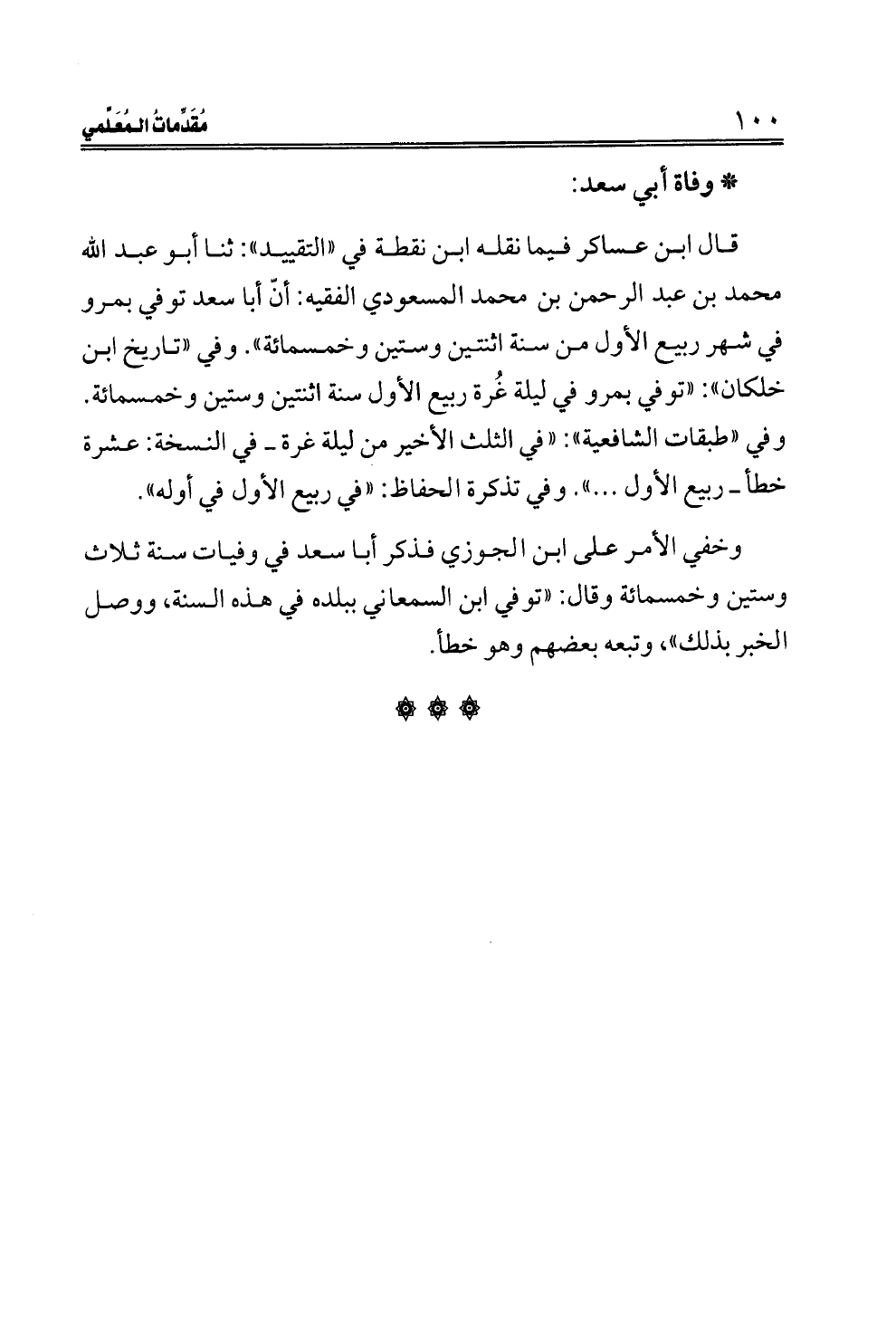 وخفي الأمر على ابن الجوزي فذكر أبا سعد في وفيات سنة ثلاث وستين وخمسمائة وقال: "توفي ابن السمعاني ببلده في هذه السنة، ووصل الخبر بذلك"، وتبعه بعضهم وهو خطأ.
