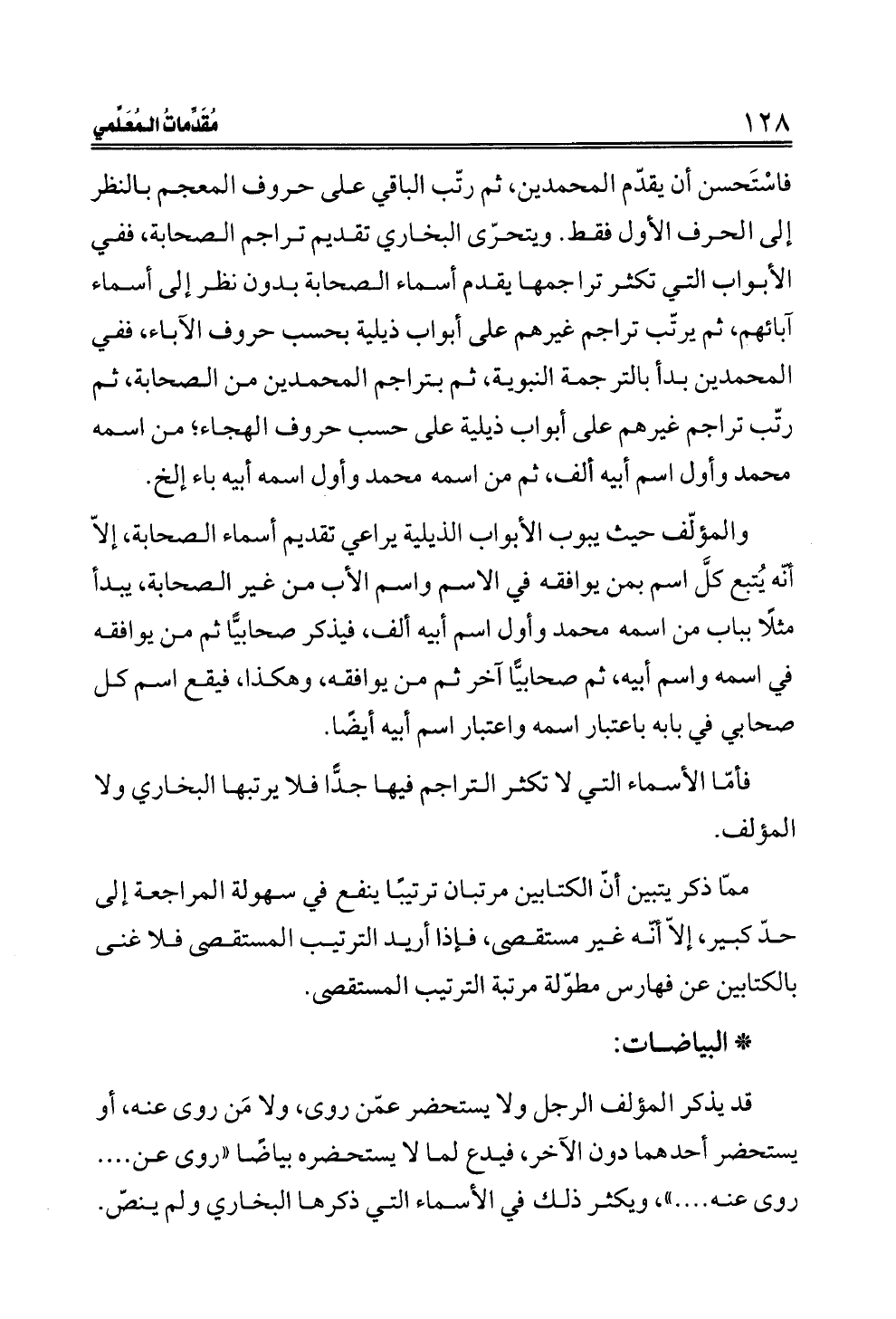 فأمّا الأسماء التي لا تكثر التراجم فيها جدًّا فلا يرتبها البخاري ولا المؤلف.