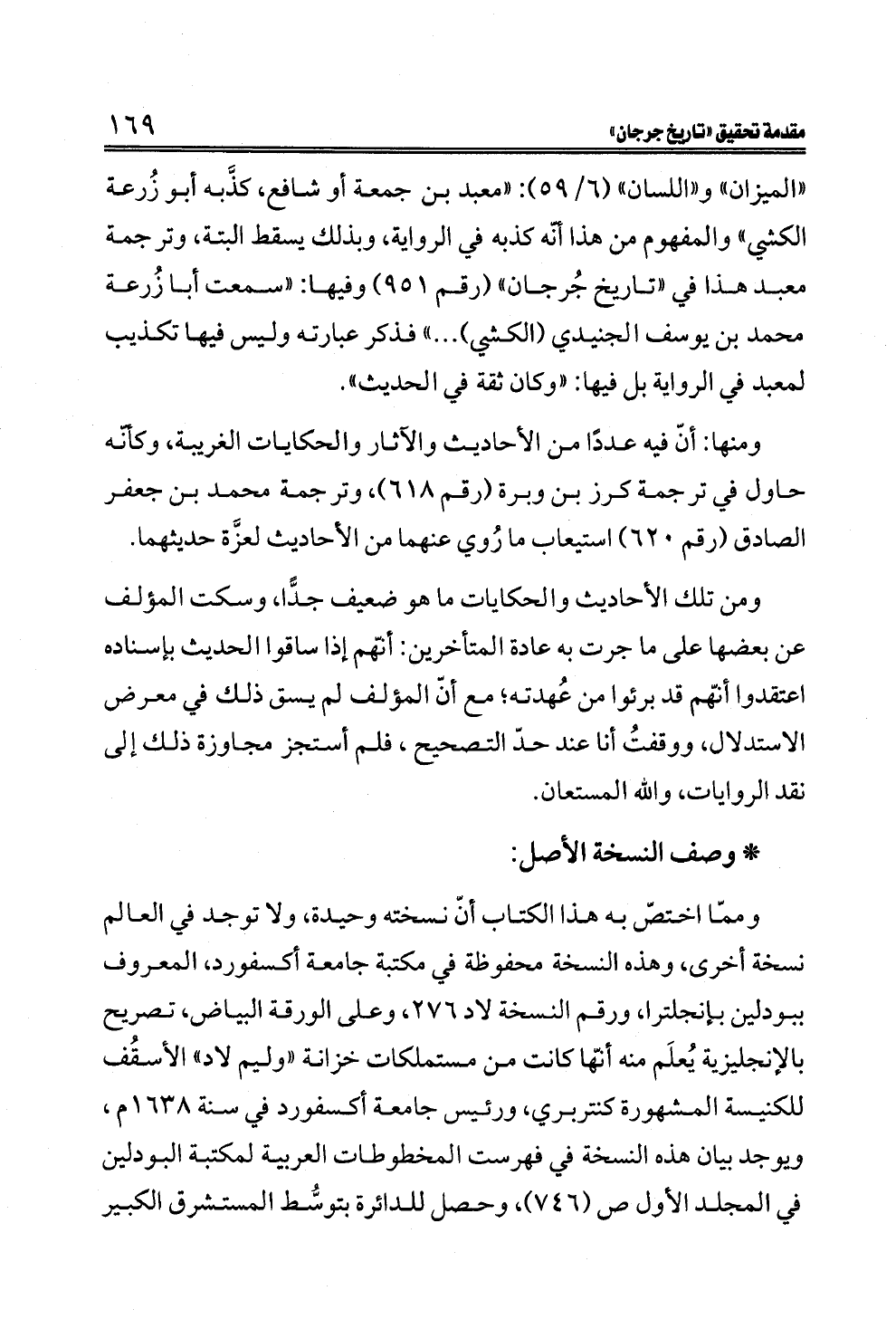 وممّا اختصّ به هذا الكتاب أنّ نسخته وحيدة، ولا توجد في العالم نسخة أخرى، وهذه النسخة محفوظة في مكتبة جامعة أكسفورد، المعروف ببودلين بإنجلترا، ورقم النسخة لاد ٢٧٦، وعلى الورقة البياض، تصريح بالإنجليزية يُعلَم منه أنّها كانت من مستملكات خزانة "وليم لاد" الأسقُف للكنيسة المشهورة كنتربري، ورئيس جامعة أكسفورد في سنة ١٦٣٨ م، ويوجد بيان هذه النسخة في فهرست المخطوطات العربية لمكتبة البودلين في المجلد الأول ص (٧٤٦)، وحصل للدائرة بتوسُّط المستشرق الكبير
