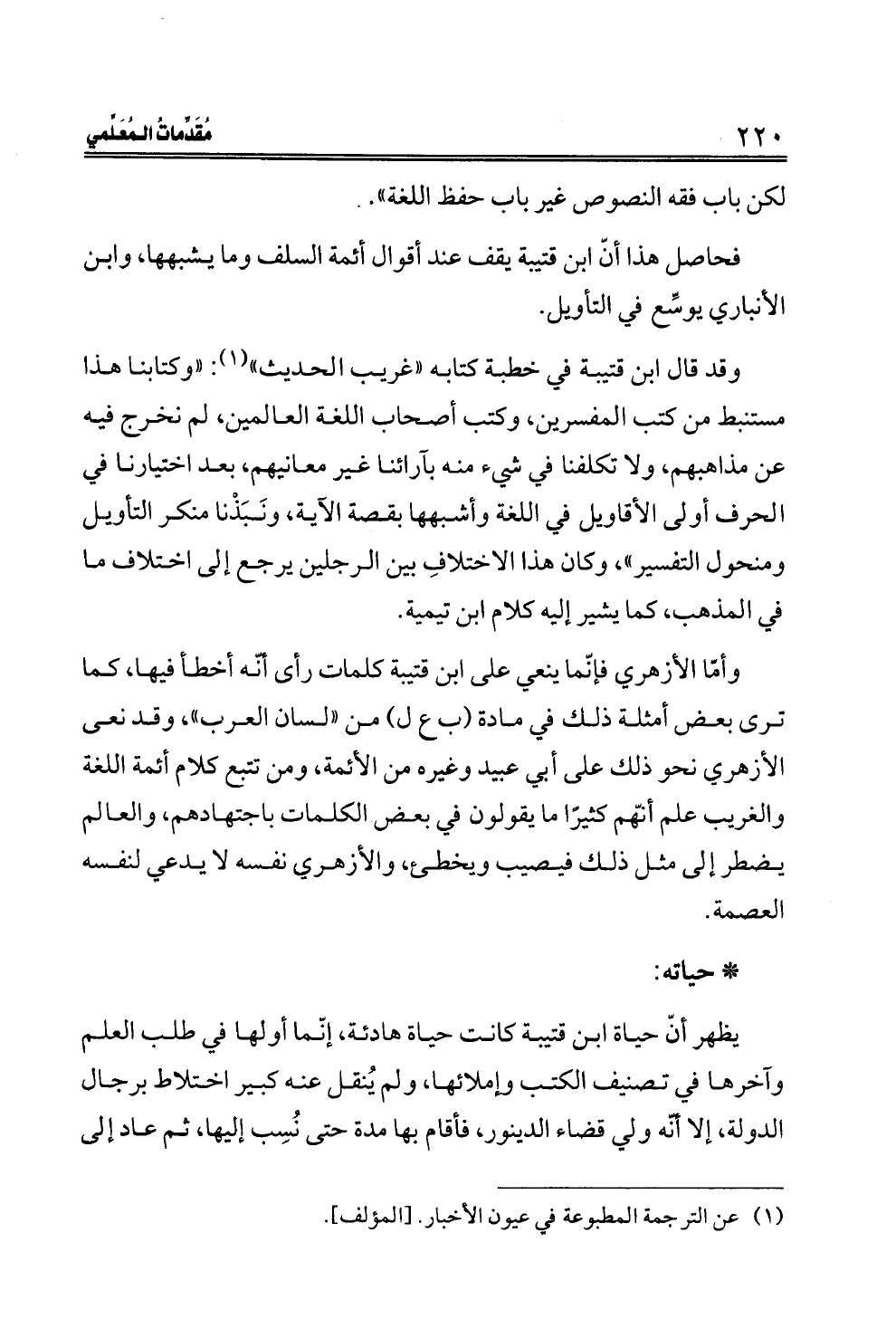 وأمّا الأزهري فإنّما ينعي على ابن قتيبة كلمات رأى أنّه أخطأ فيها، كما ترى بعض أمثلة ذلك في مادة (ب ع ل) من "لسان العرب"، وقد نعى الأزهري نحو ذلك على أبي عبيد وغيره من الأئمة، ومن تتبع كلام أئمة اللغة والغريب علم أنّهم كثيرًا ما يقولون في بعض الكلمات باجتهادهم، والعالم يضطر إلى مثل ذلك فيصيب ويخطئ، والأزهري نفسه لا يدعي لنفسه العصمة.