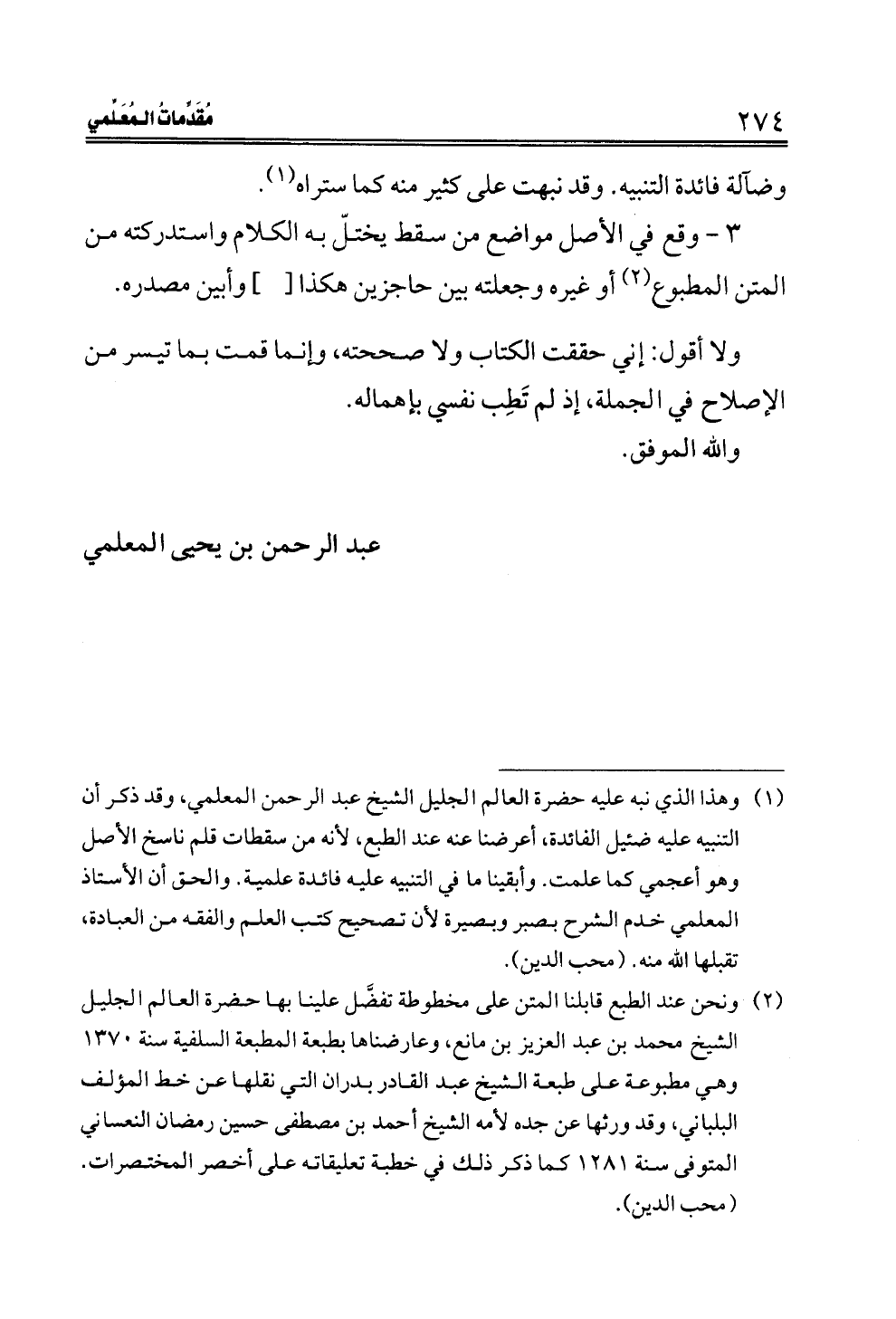(¬١) وهذا الذي نبه عليه حضرة العالم الجليل الشيخ عبد الرحمن المعلمي، وقد ذكر أن التنبيه عليه ضئيل الفائدة، أعرضنا عنه عند الطبع، لأنه من سقطات قلم ناسخ الأصل وهو أعجمي كما علمت. وأبقينا ما في التنبيه عليه فائدة علمية. والحق أن الأستاذ المعلمي خدم الشرح بصبر وبصيرة لأن تصحيح كتب العلم والفقه من العبادة، تقبلها الله منه. (محب الدين).