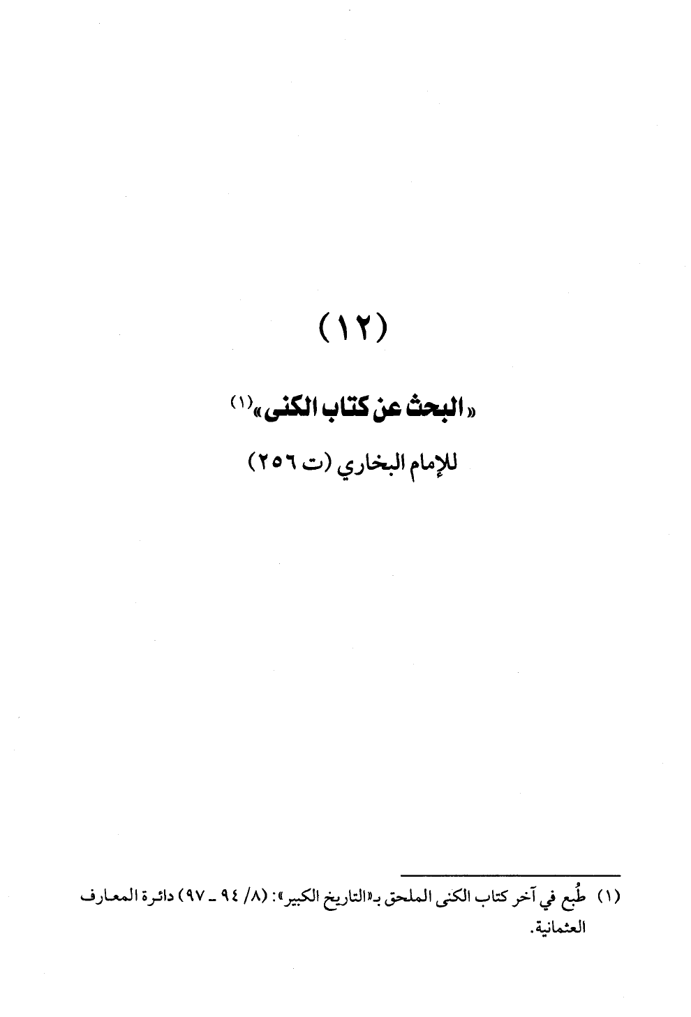 (¬١) طُبع في آخر كتاب الكنى الملحق بـ «التاريخ الكبير»: (٨/ ٩٤ ــ ٩٧) دائرة المعارف العثمانية.