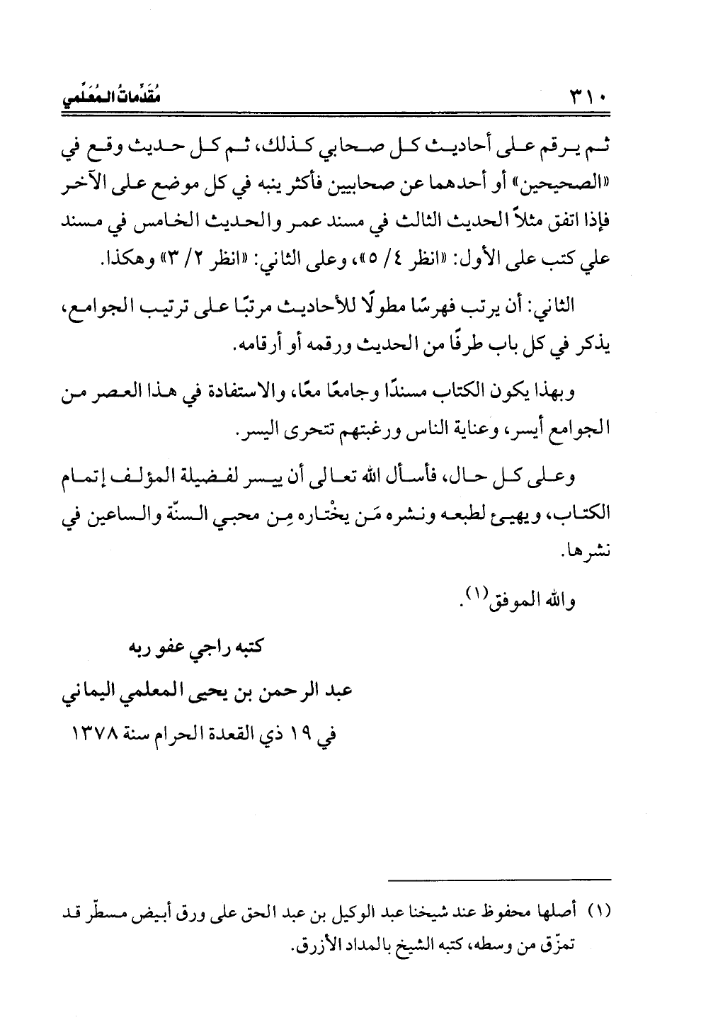 وعلى كل حال، فأسأل الله تعالى أن ييسر لفضيلة المؤلف إتمام الكتاب، ويهيئ لطبعه ونشره مَن يخْتاره مِن محبي السنّة والساعين في نشرها.