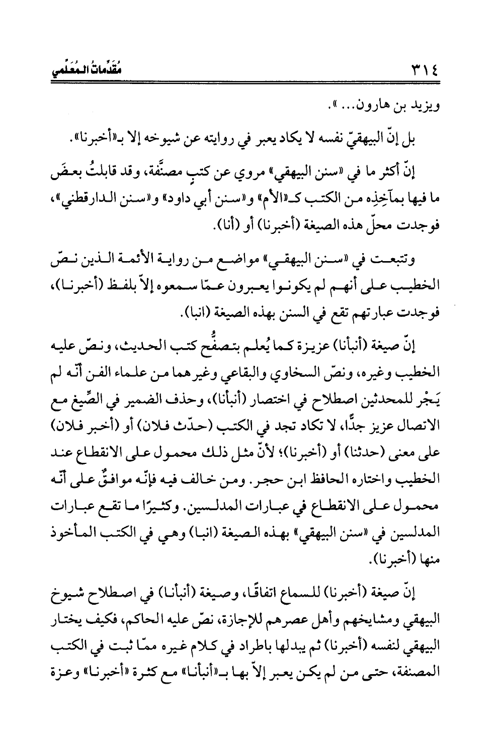 وتتبعت في "سنن البيهقي" مواضع من رواية الأئمة الذين نصّ الخطيب على أنهم لم يكونوا يعبرون عمّا سمعوه إلاّ بلفظ (أخبرنا)، فوجدت عبارتهم تقع في السنن بهذه الصيغة (انبا).