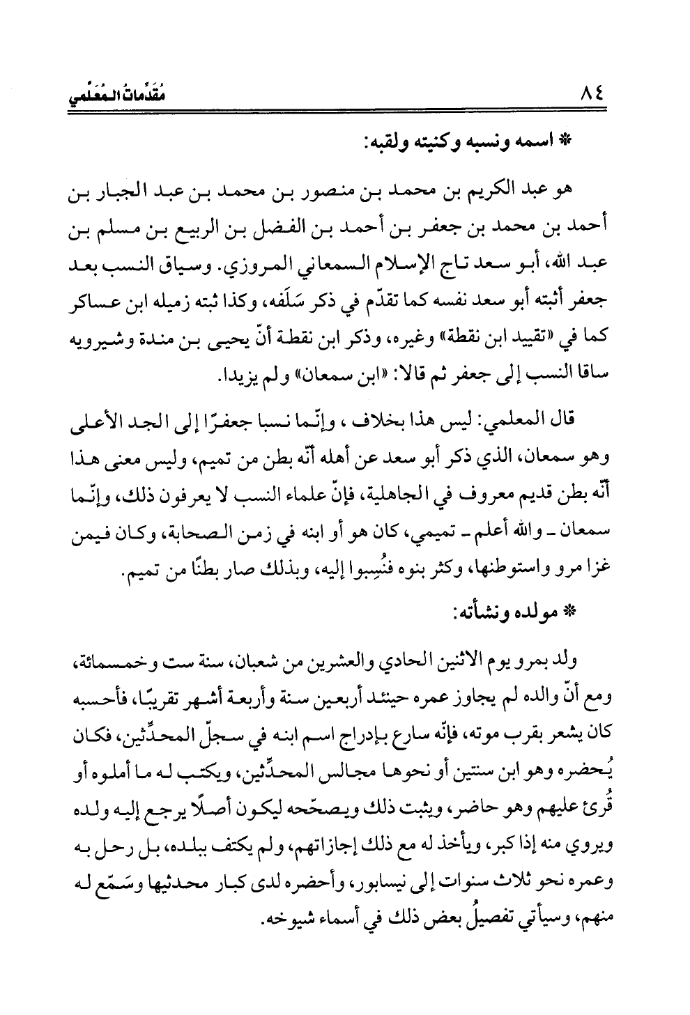 قال المعلمي: ليس هذا بخلاف، وإنّما نسبا جعفرًا إلى الجد الأعلى وهو سمعان، الذي ذكر أبو سعد عن أهله أنّه بطن من تميم، وليس معنى هذا أنّه بطن قديم معروف في الجاهلية، فإنّ علماء النسب لا يعرفون ذلك، وإنّما سمعان ــ والله أعلم ــ تميمي، كان هو أو ابنه في زمن الصحابة، وكان فيمن غزا مرو واستوطنها، وكثر بنوه فنُسِبوا إليه، وبذلك صار بطنًا من تميم.