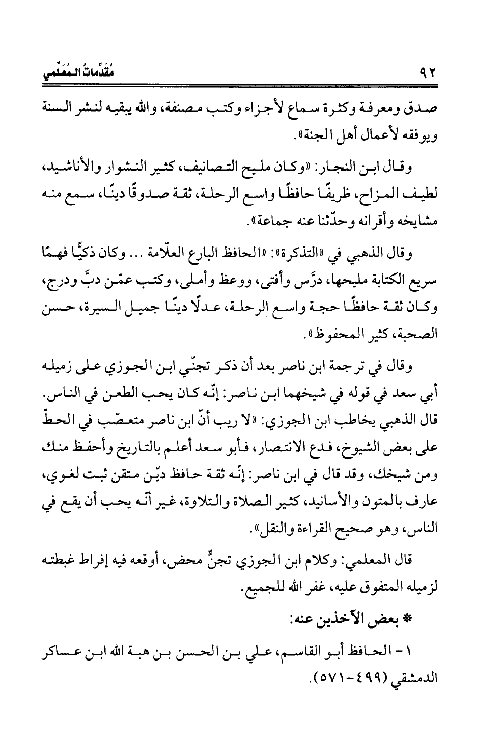 قال المعلمي: وكلام ابن الجوزي تجنٍّ محض، أوقعه فيه إفراط غبطته لزميله المتفوق عليه، غفر الله للجميع.
