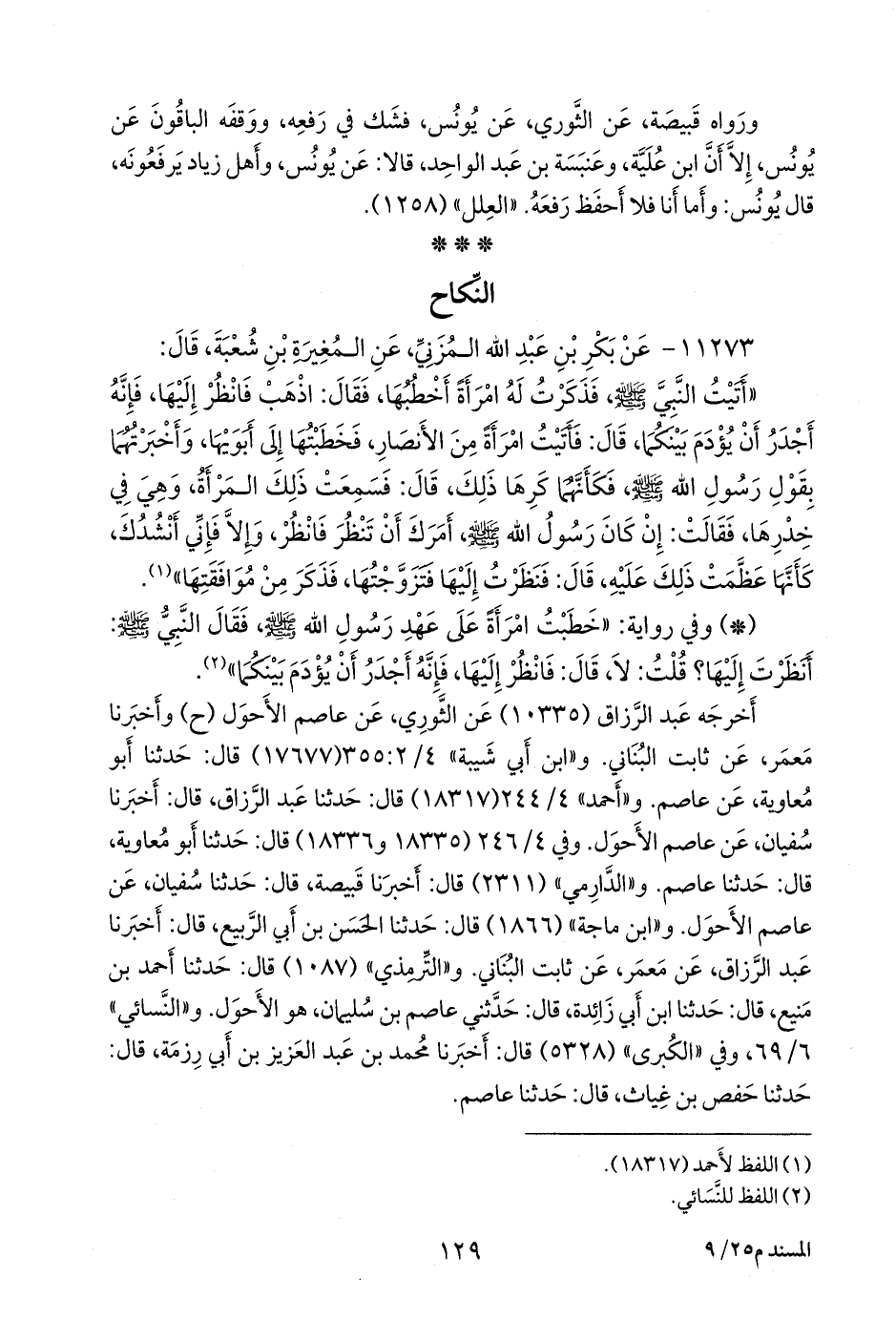 (¬٣) المسند الجامع (١١٧٥٧)، وتحفة الأشراف (١١٤٨٩)، وأطراف المسند (٧٣٤٠)، وإتحاف الخِيرَة المَهَرة (٣٠٩٦).