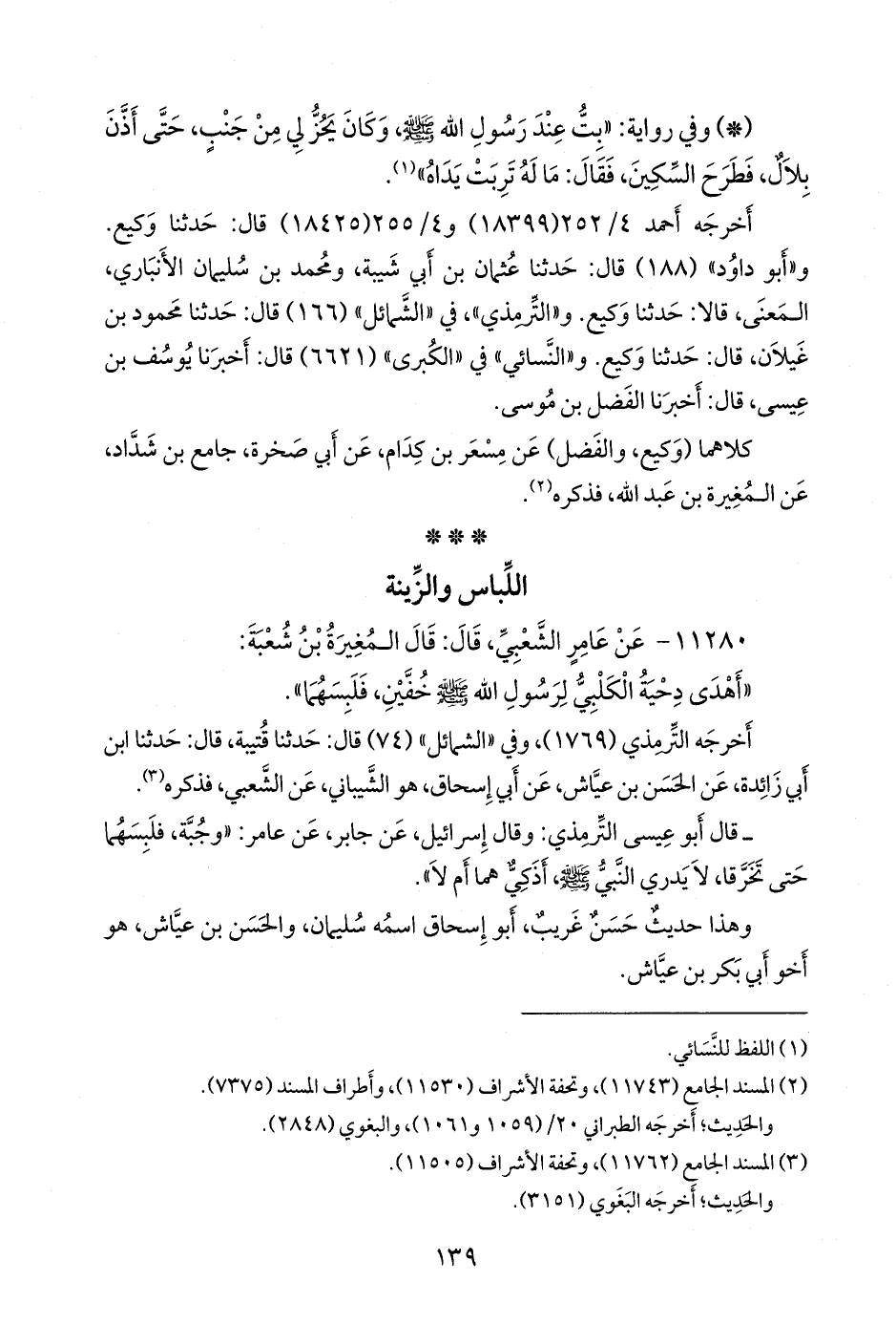 - قال التِّرمِذي (١٧٦٩): وقال إِسرائيل، عن جابر، عن عامر: «وجُبَّة، فلبِسَهما حتى تَخَرَّقا، لا يَدري النبيُّ صَلى الله عَليه وسَلم، أَذَكِيٌّ هما أَم لا؟».