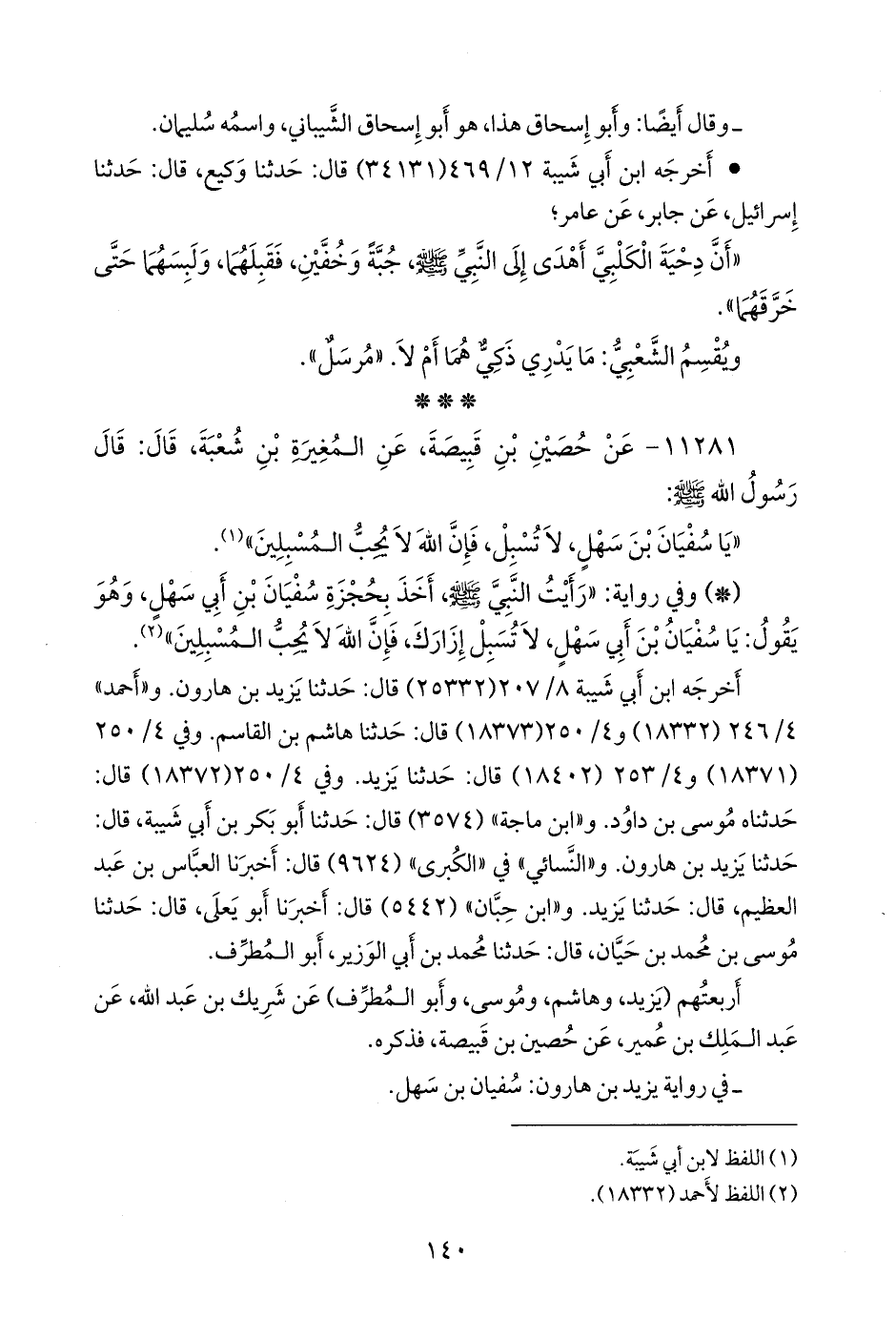 «رأيت رسول الله صَلى الله عَليه وسَلم آخذ بحجزة سفيان بن أبي سهل، فقال: يا سفيان بن أبي سهل، لا تسبل، فإن الله لا يحب المسبلين».