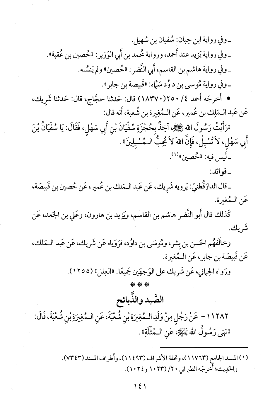 - قال الدارقُطني: يرويه شريك، عن عبد الملك بن عمير، عن حصين بن قَبيصَة، عن المغيرة.
