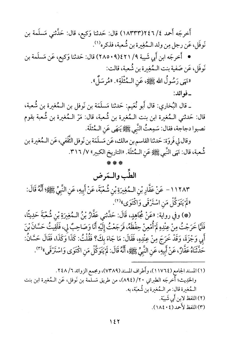 ١١٢٨٣ - عن عقار بن المغيرة بن شعبة، عن أبيه، عن النبي صَلى الله عَليه وسَلم؛ أنه قال: