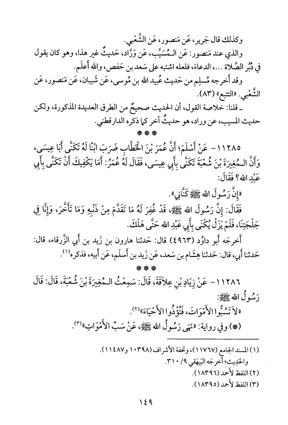 - وفي رواية: «نهى رسول الله صَلى الله عَليه وسَلم عن سب الأموات» (¬٢).