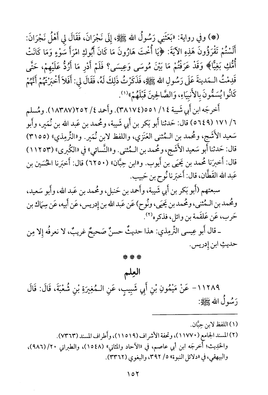 أخرجه ابن أبي شيبة (٢٦١٢٨) قال: حدثنا وكيع، عن سفيان. و «أحمد» ٤/ ٢٥٠ (١٨٣٦٨) قال: حدثنا محمد بن جعفر، وبَهز، قالا: حدثنا شعبة. وفي ٤/ ٢٥٢ (١٨٣٩٨) قال: حدثنا وكيع، قال: حدثنا سفيان، وشعبة. وفي ٤/ ٢٥٥ (١٨٤٢٩) قال: حدثنا وكيع، قال: حدثنا سفيان (ح) قال: وحدثنا عبد الرَّحمَن، عن سفيان. وفي (١٨٤٣٠) قال: حدثنا بَهز بن أسد، قال: حدثنا شعبة. و «مسلم» ١/ ٧ (٢) قال: حدثنا أَبو بكر بن أبي شيبة، قال: حدثنا وكيع، عن شعبة، وسفيان. و «ابن ماجة» (٤١) قال: حدثنا أَبو بكر بن أبي شيبة، قال: حدثنا وكيع، عن سفيان. و «التِّرمِذي» (٢٦٦٢) قال: حدثنا محمد بن بشار، قال: حدثنا عبد الرَّحمَن بن مهدي، قال: حدثنا سفيان.