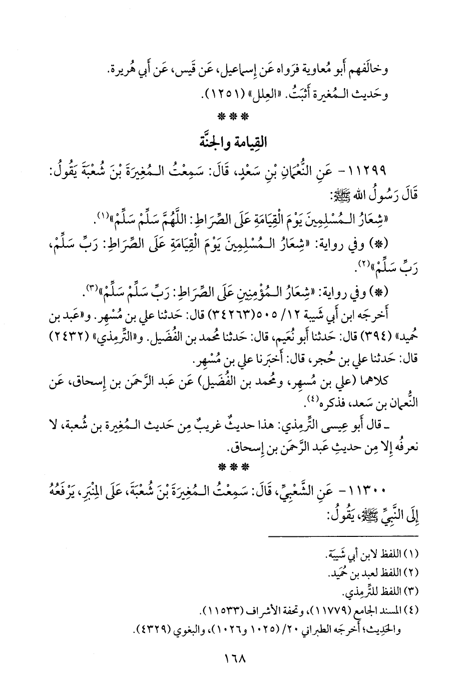 - وفي رواية: «شعار المؤمنين على الصراط: رب سلم سلم» (¬٣).