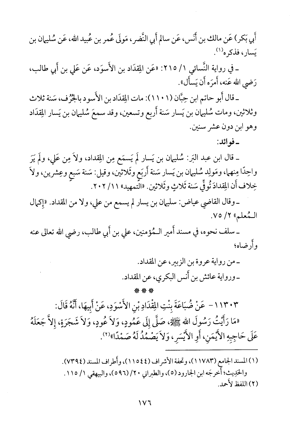 - ورواية عائش بن أَنس البكري، عن المقداد.