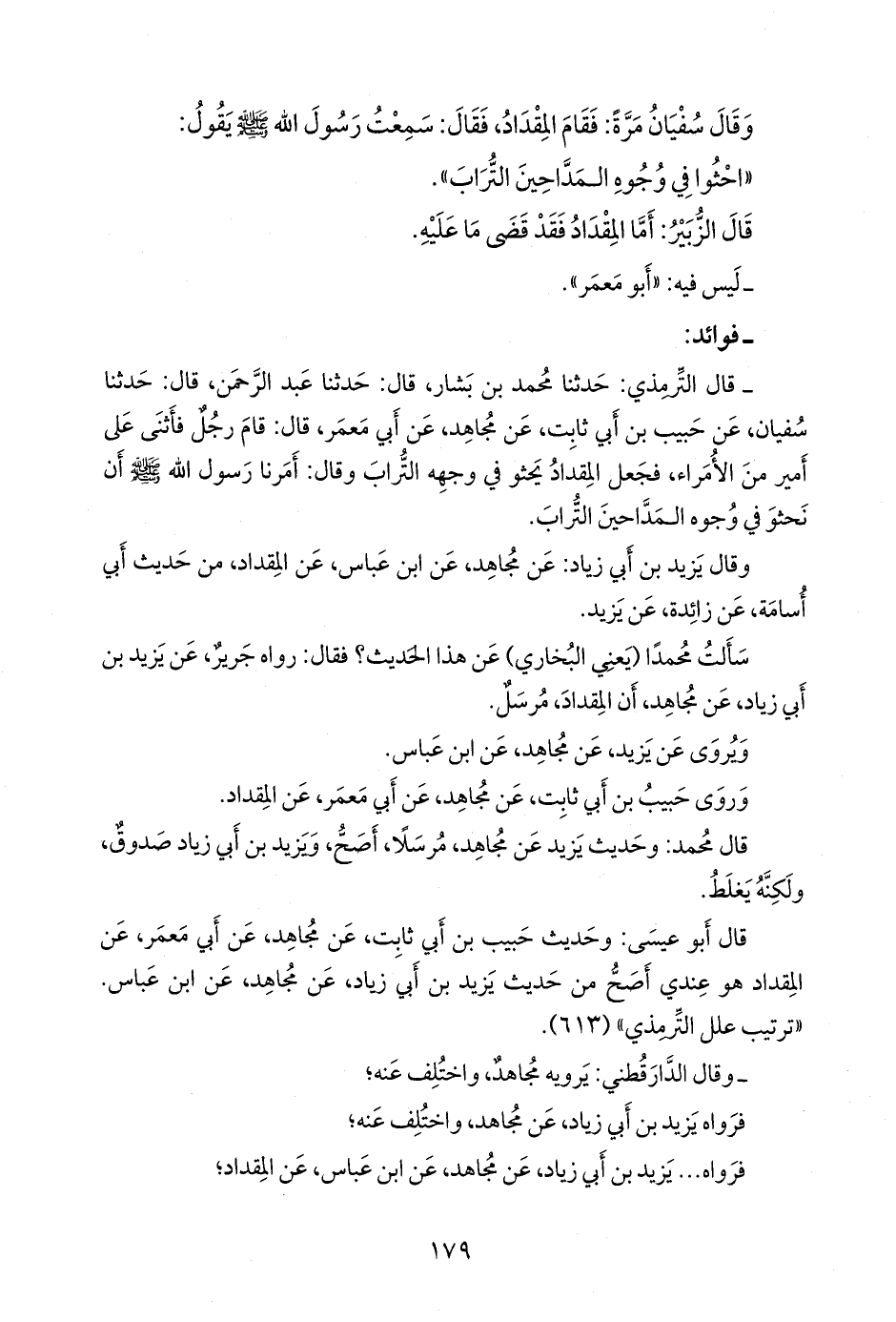 سألتُ محمدًا، يعني البخاري، عن هذا الحديث؟ فقال: رواه جرير، عن يزيد بن أبي زياد، عن مجاهد، أن المقداد، مرسل.