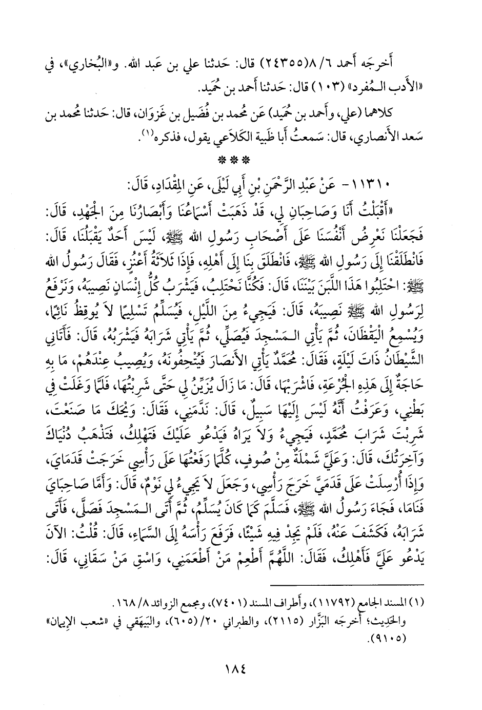 ١١٣١٠ - عن عبد الرَّحمَن بن أبي ليلى، عن المقداد، قال: