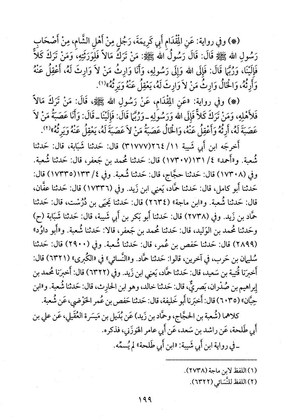 - وفي رواية أحمد (١٧٣٣٥)، وأبي داود (٢٨٩٩)، والنَّسَائي (٦٣٢٢)، وابن حبان (٦٠٣٥): «عن المقدام» غير منسوب.