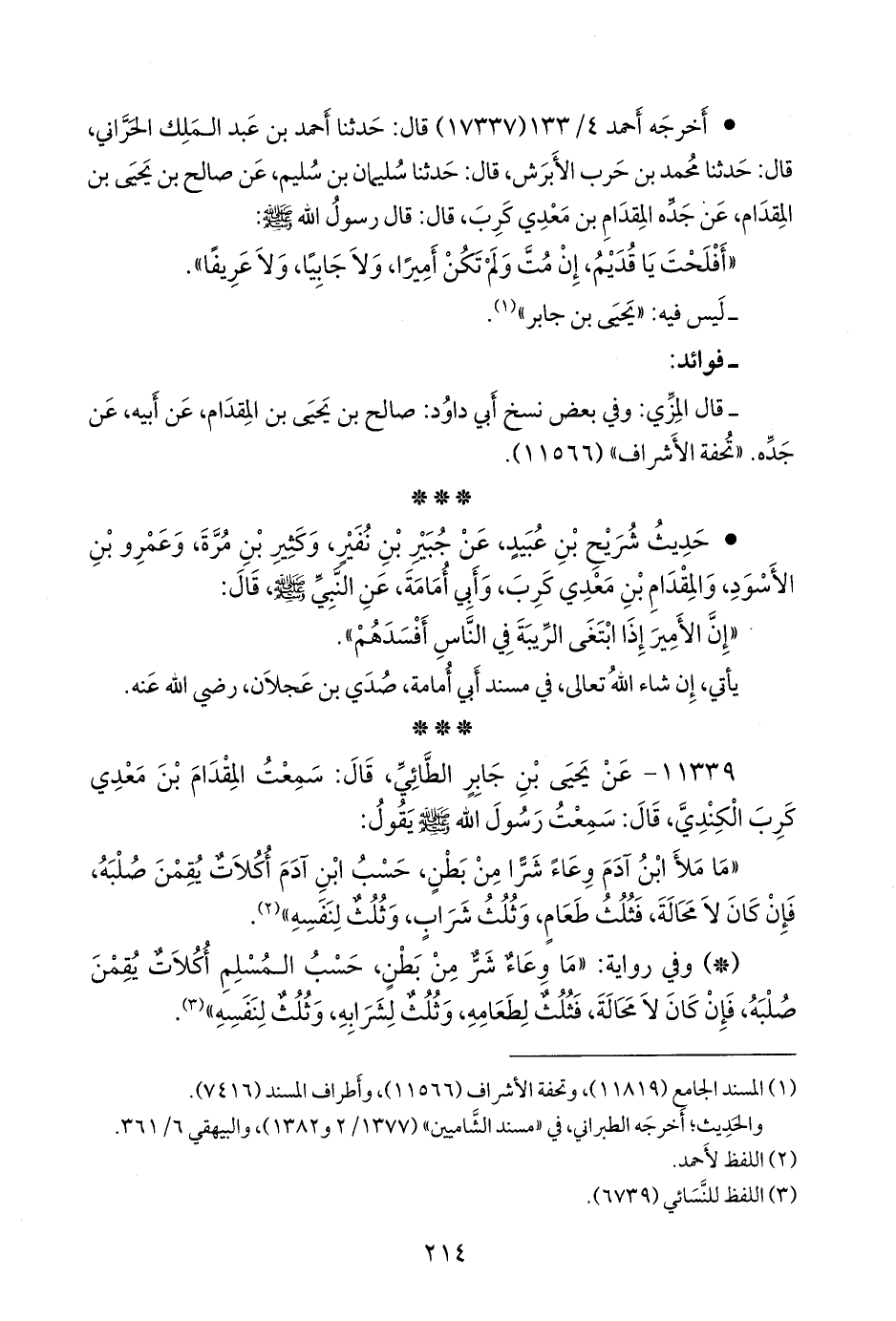 ١١٣٣٩ - عن يحيى بن جابر الطائي، قال: سمعت المقدام بن مَعْدي كرب الكندي، قال: سمعت رسول الله صَلى الله عَليه وسَلم يقول: