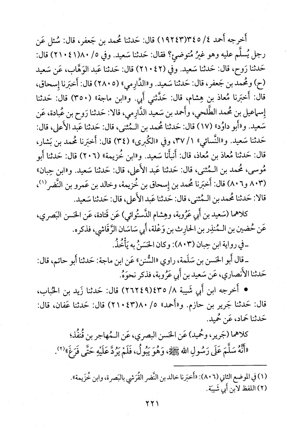 و «ابن ماجة» (٣٥٠) قال: حدثنا إسماعيل بن محمد الطلحي، وأحمد بن سعيد الدَّارِمي، قالا: حدثنا روح بن عبادة، عن سعيد. و «أَبو داود» (١٧) قال: حدثنا محمد بن المثنى، قال: حدثنا عبد الأعلى، قال: حدثنا سعيد. و «النَّسَائي» ١/ ٣٧، وفي «الكبرى» (٣٤) قال: أخبرنا محمد بن بشار، قال: حدثنا معاذ بن معاذ، قال: أنبأنا سعيد. و «ابن خزيمة» (٢٠٦) قال: حدثنا أَبو موسى، محمد بن المثنى، قال: حدثنا عبد الأعلى، قال: حدثنا سعيد. و «ابن حِبَّان» (٨٠٣ و ٨٠٦) قال: أخبرنا محمد بن إسحاق بن خزيمة، وخالد بن عَمرو بن النضر (¬١)، قالا: حدثنا محمد بن المثنى، قال: حدثنا عبد الأعلى، قال: حدثنا سعيد.