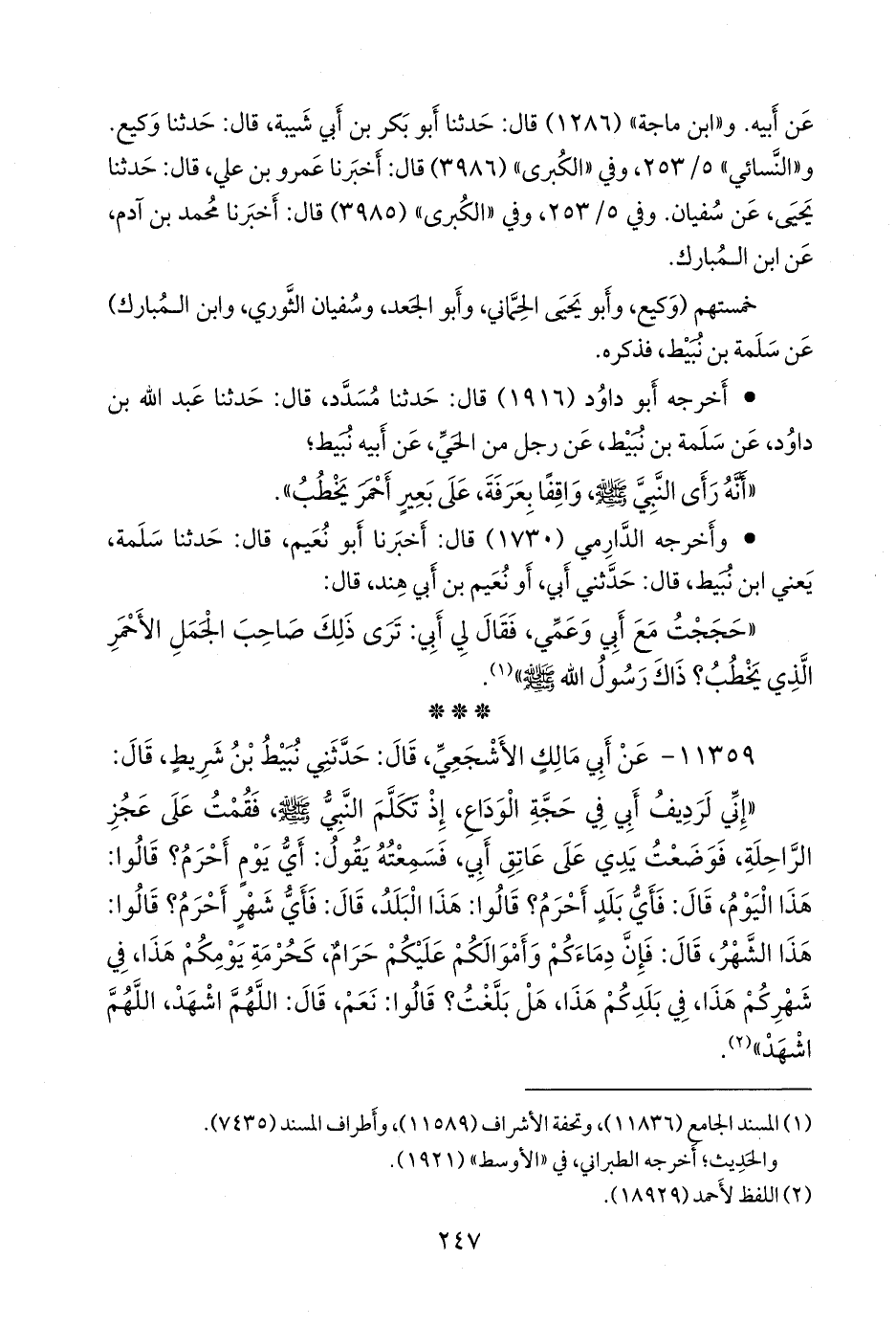 (¬٢) المسند الجامع (١١٨٣٧)، وتحفة الأشراف (١١٥٩٠)، وأطراف المسند (٧٤٣٥).