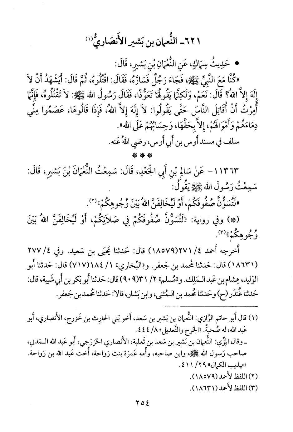 (¬١) قال أَبو حاتم الرازي: النعمان بن بشير بن سعد، أخو بني الحارث بن خزرج، الأَنصاري، أَبو عبد الله، له صحبة. «الجرح والتعديل» ٨/ ٤٤٤.